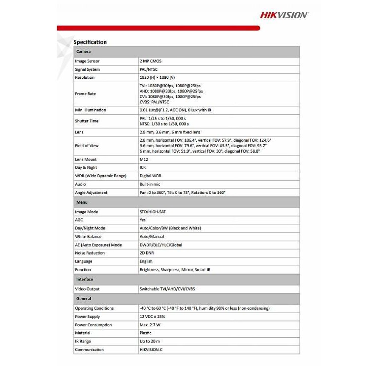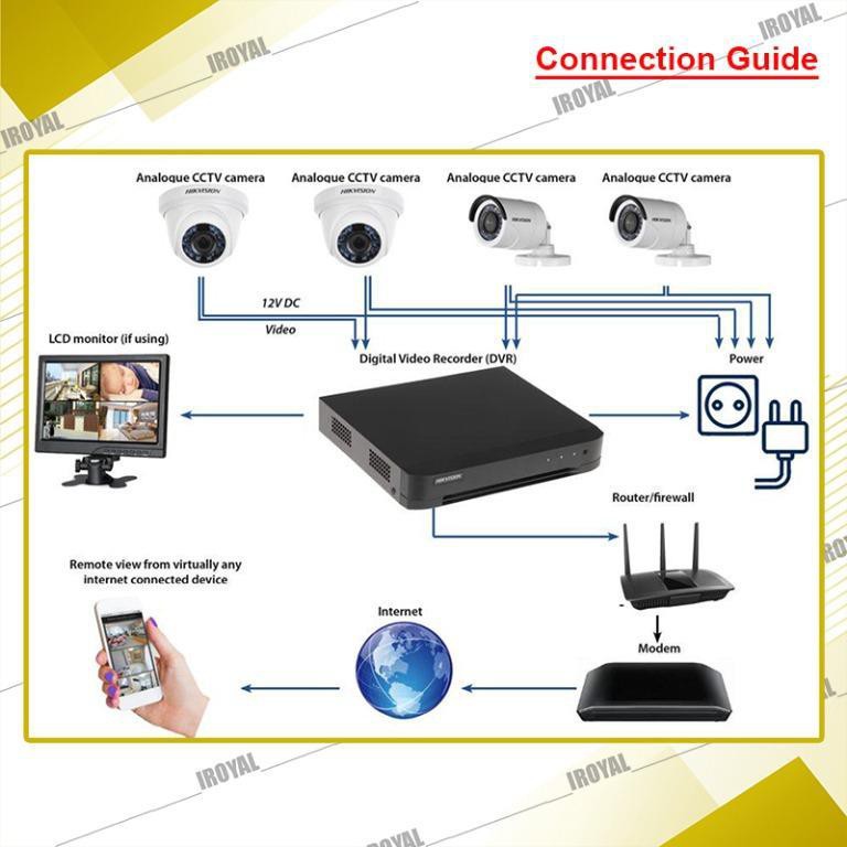 Hikvision CCTV Analog Audio Installation Package 2 Camera to 4 Cameras with DVR Recorder and 1TB HDD