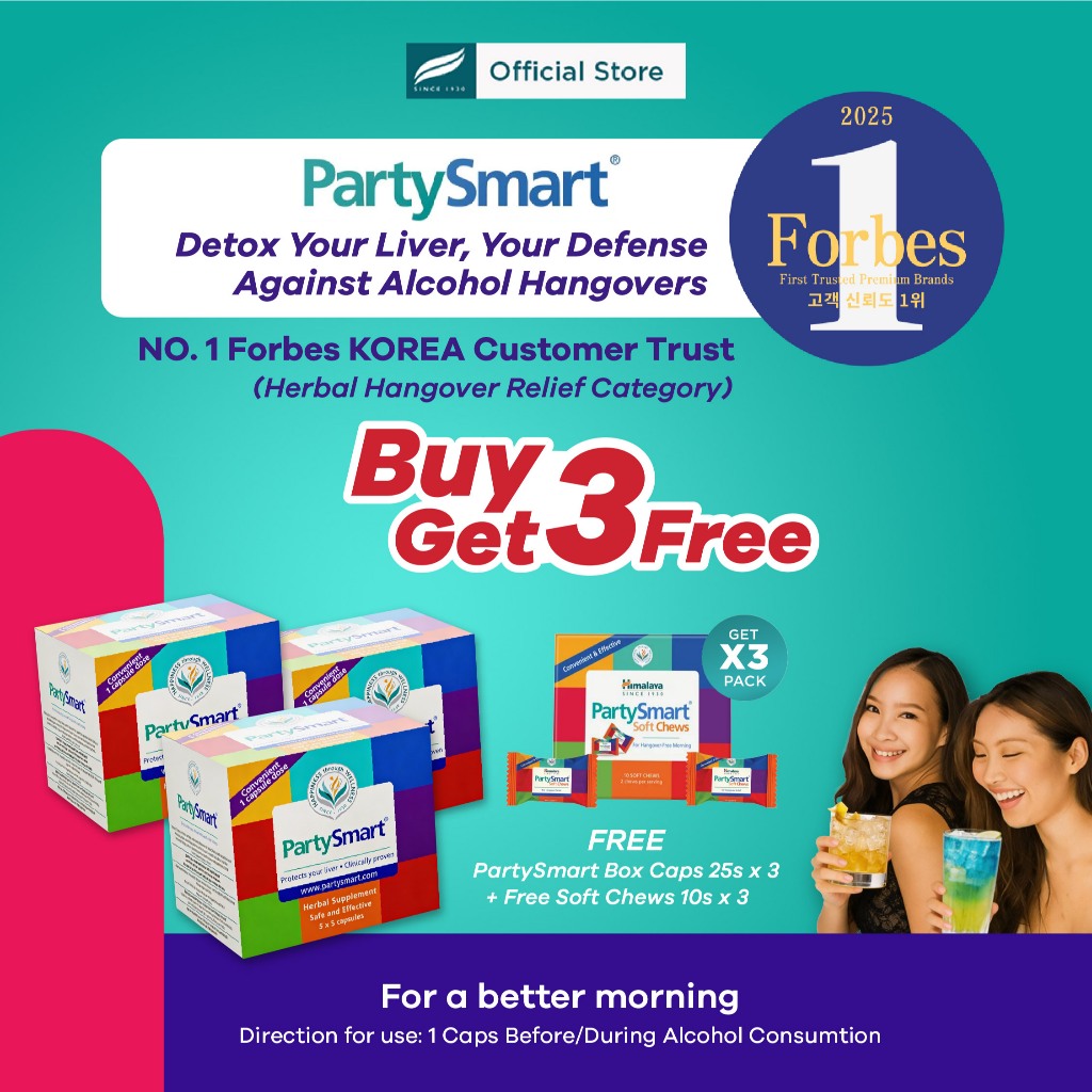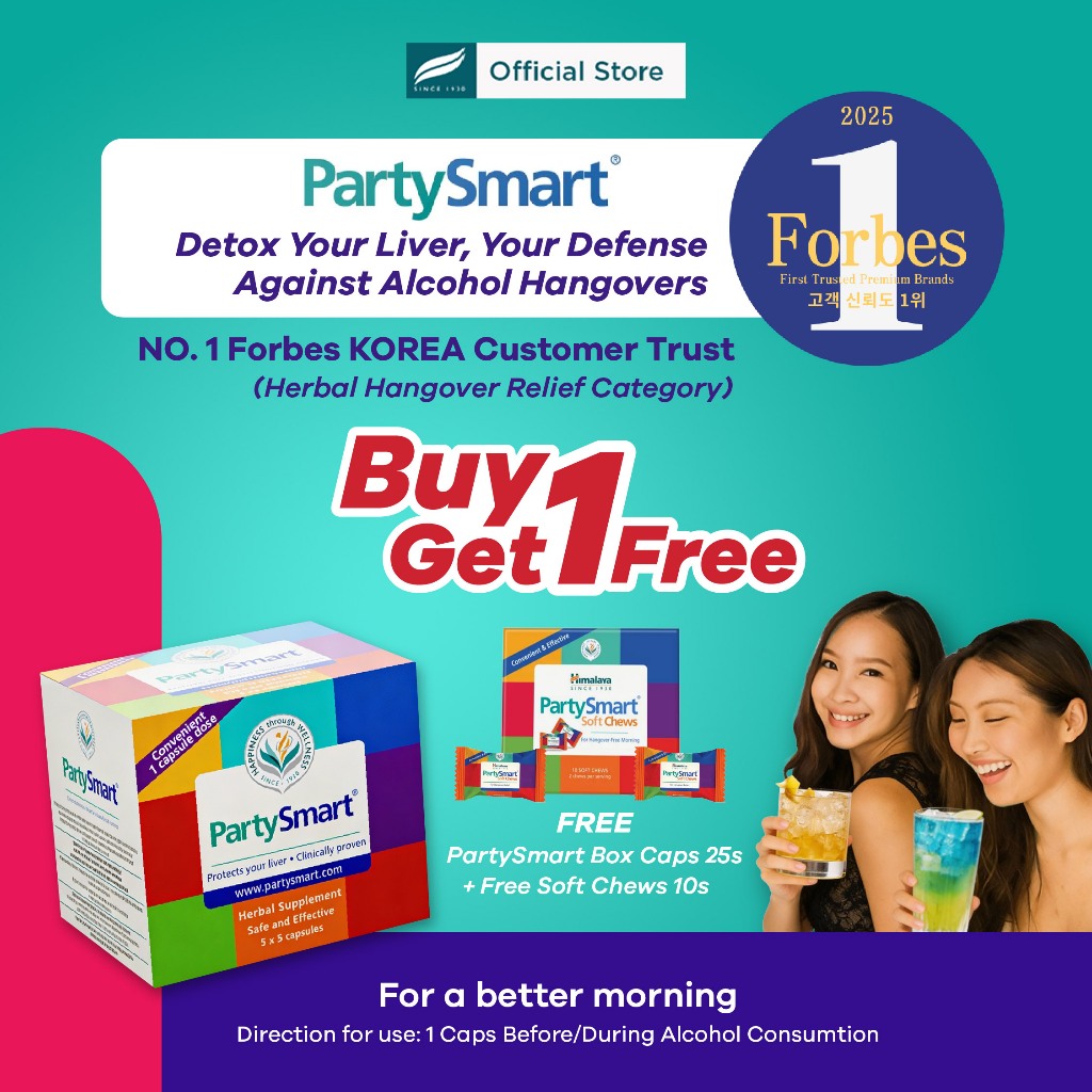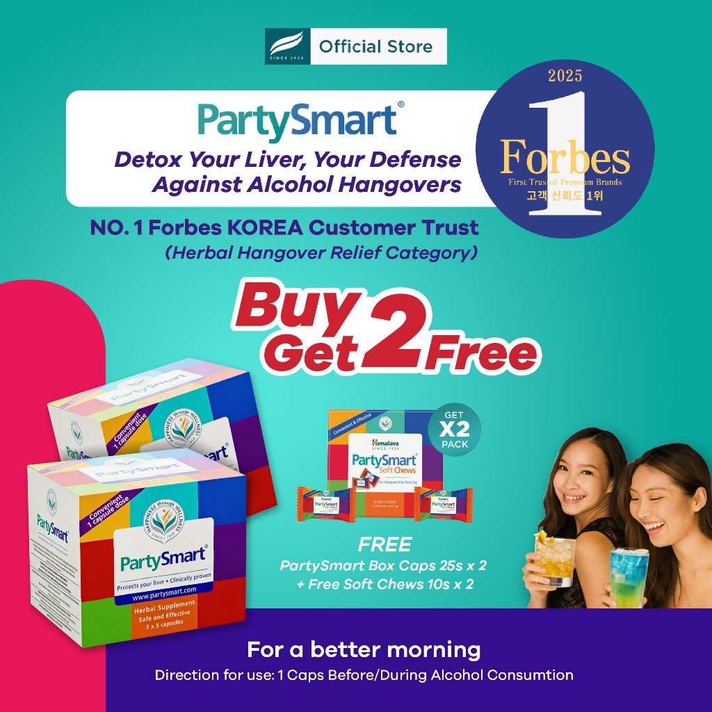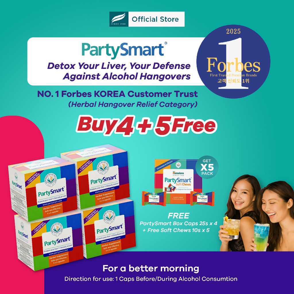 Himalaya PartySmart BOX (25 Caps) + FREE PartySmart Soft Chews 10s | Alcohol Detox & Hangover Reliever