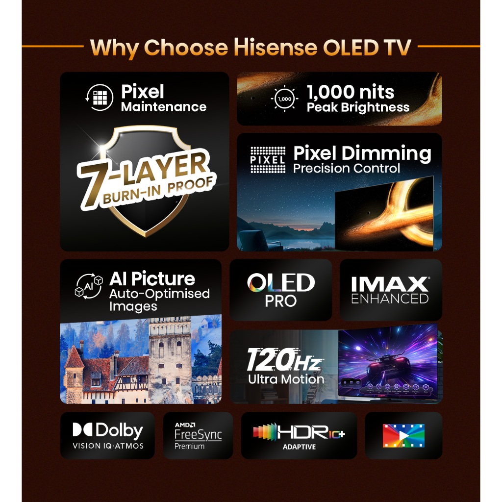 Hisense A85Q 55 inch OLED Pro Smart TV | 120Hz | 1000nits Brightness |Dolby Atmos | IMAX Enhanced