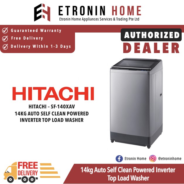Hitachi 14kg Auto Self Clean Powered Inverter Top Load Washer SF-140XAV