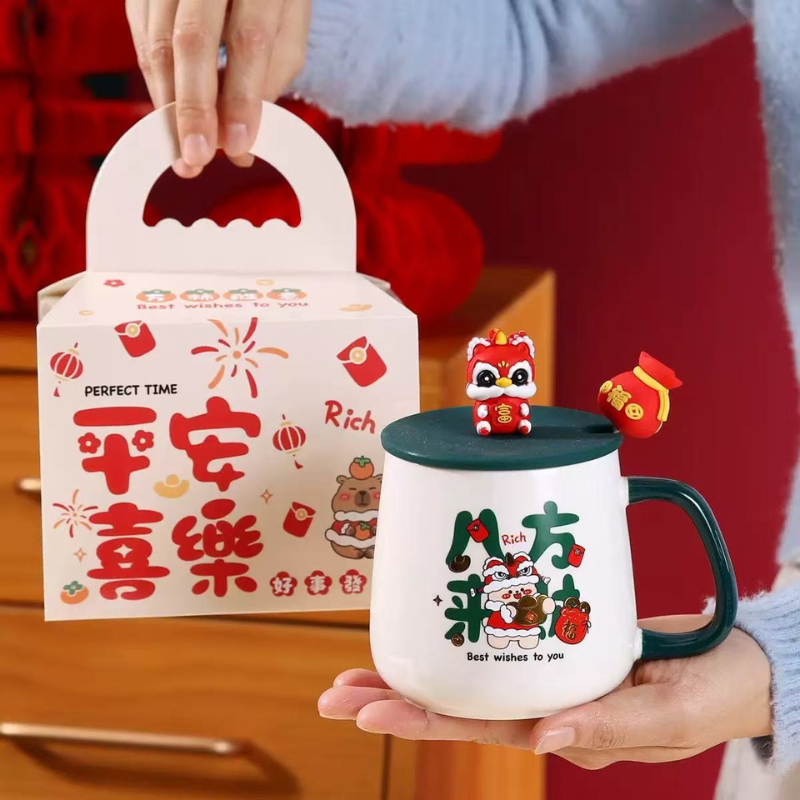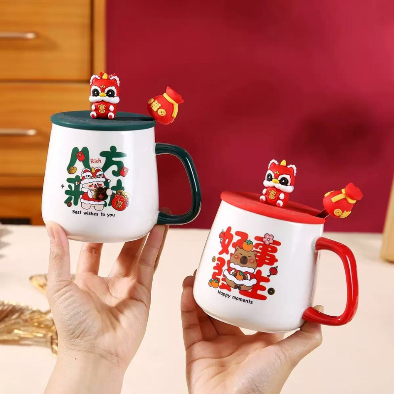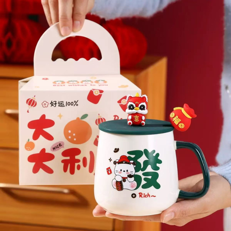 Mother's Gift Set Ceramic Mug with Lid & Spoon | Thermostat Coffee Cup | Ready Stock Gift