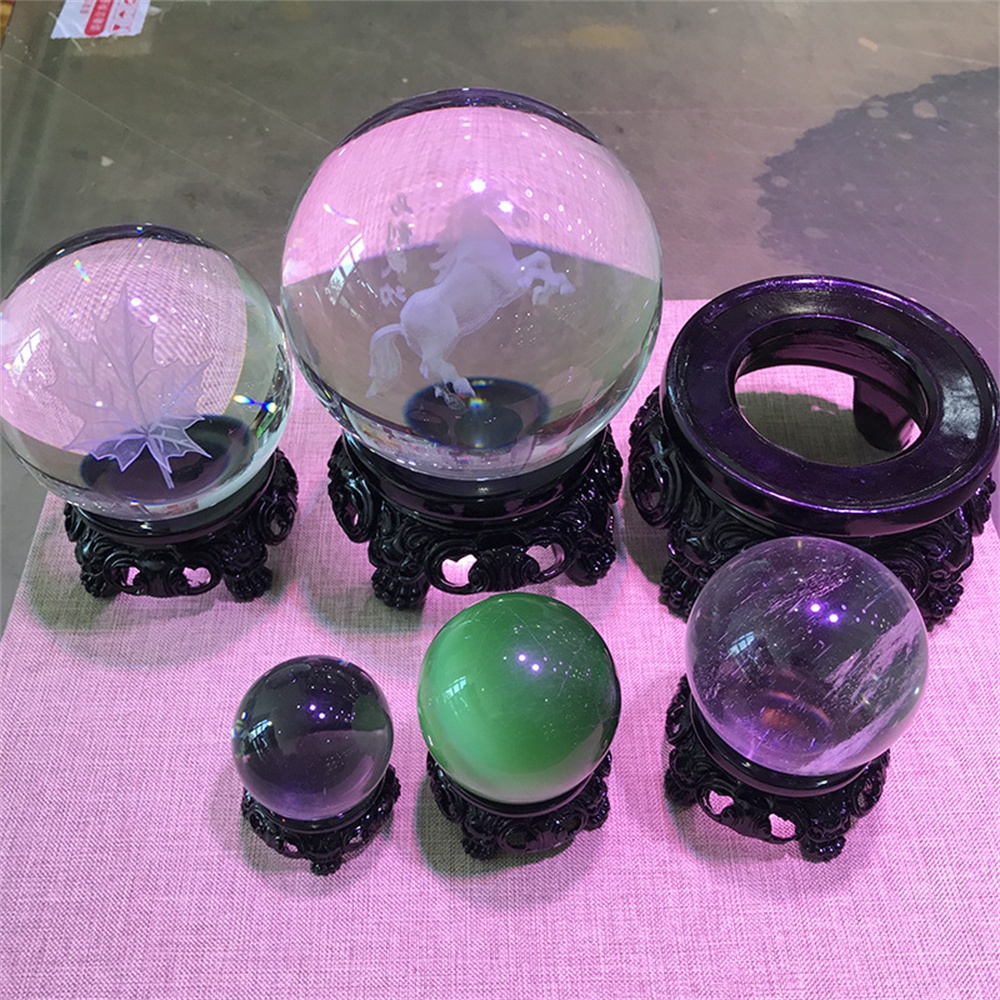 Hollow Crystal Black Round Ball Base Classical Carving Style Resin Display Stand Decorative Ball Pedestal