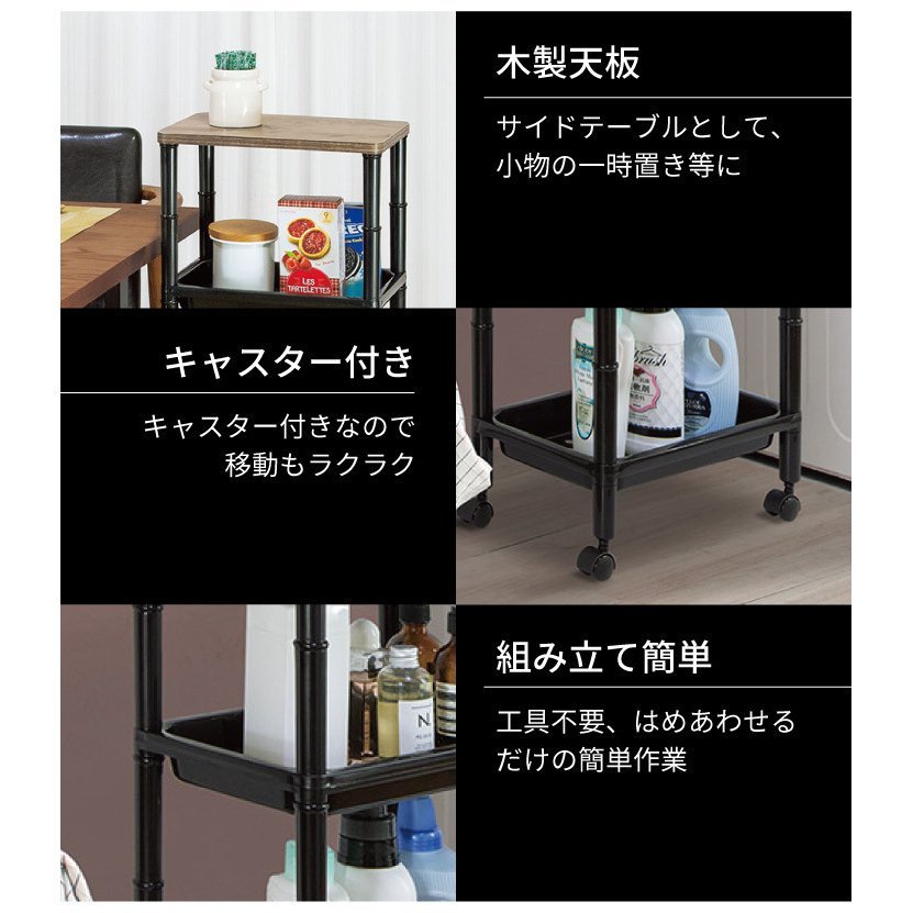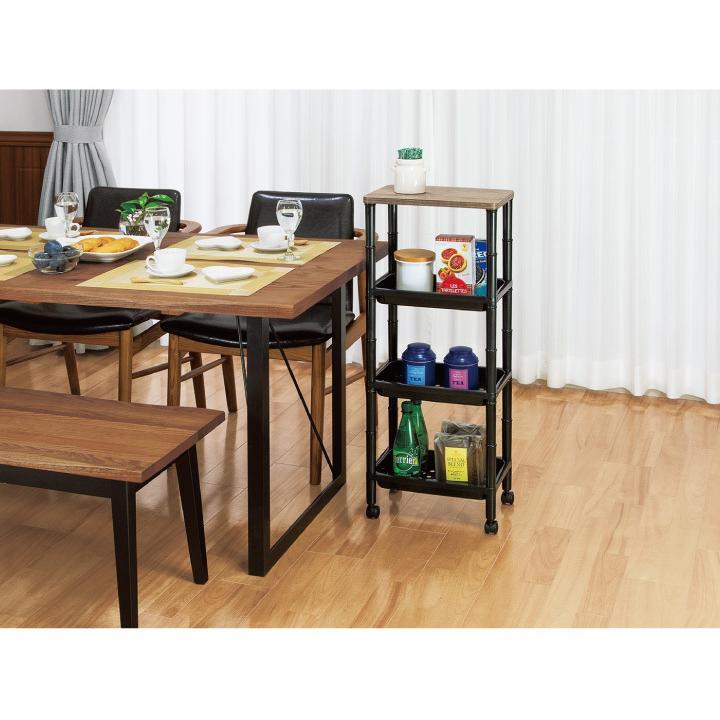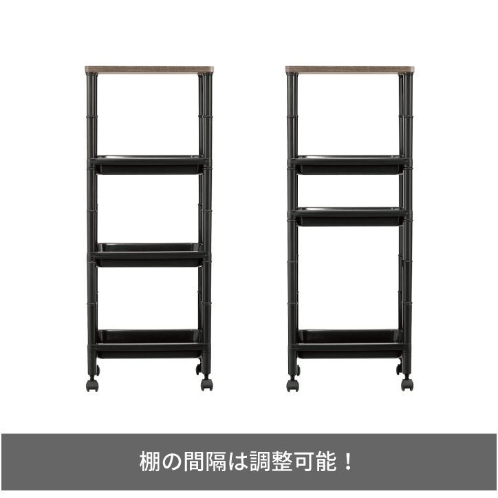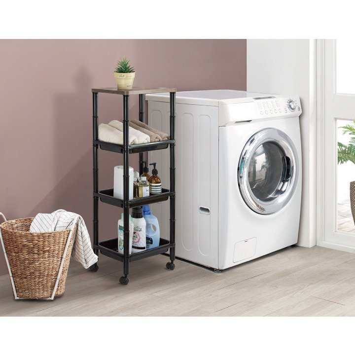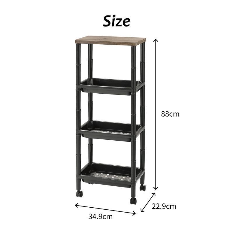 Home and Living Wooden Style Side Table Desk Side Slim Wagon 4 Tiers with Wheels