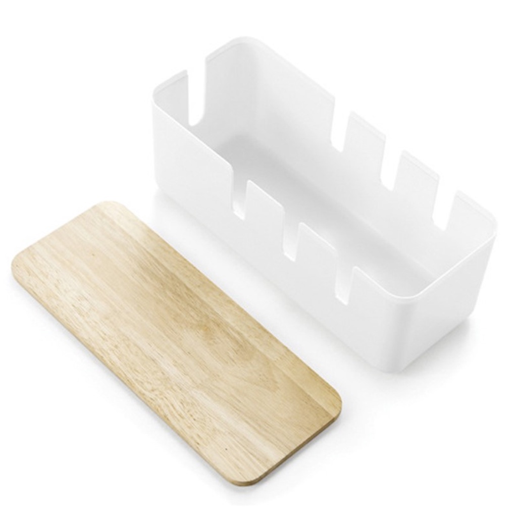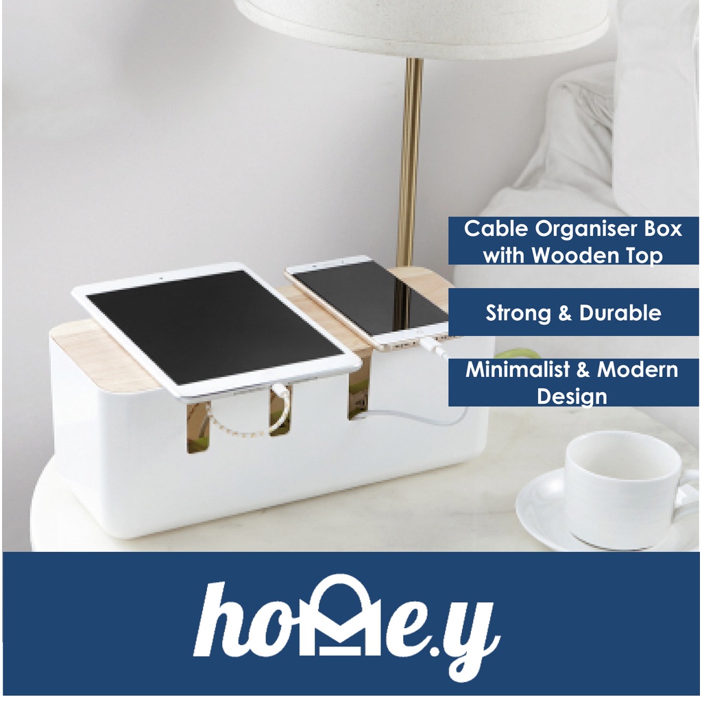 Home.y Cable Organizer Desk Organiser Minimalistic with Raw Wooden Top for Extension Cord
