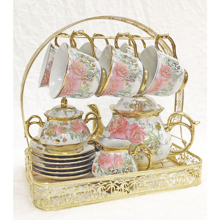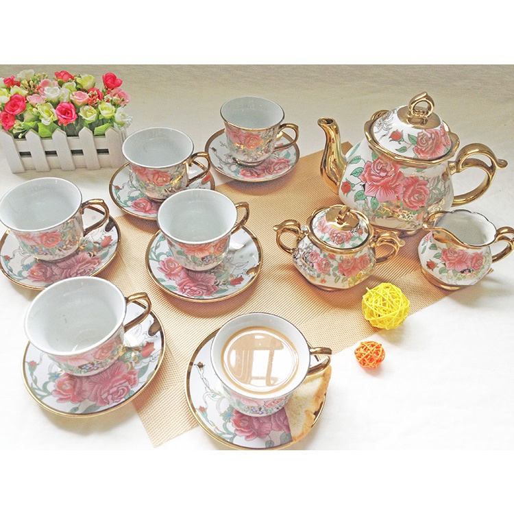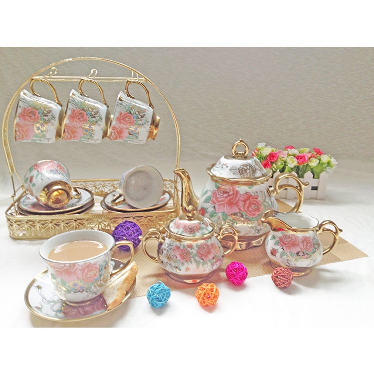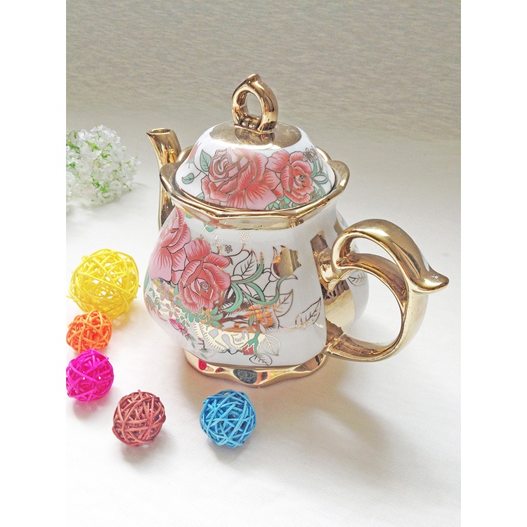 Homefurniture - 22PC European Style Coffee Set Ceramic Teapot Set Electroplating Teacup Set Gift Set Afternoon Tea Set