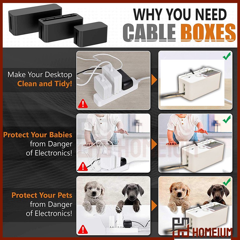Homeium Wire Organizer Box Power Strip Cable Management Box Organizer Plastic Cable Storage Case for Desk TV Computer