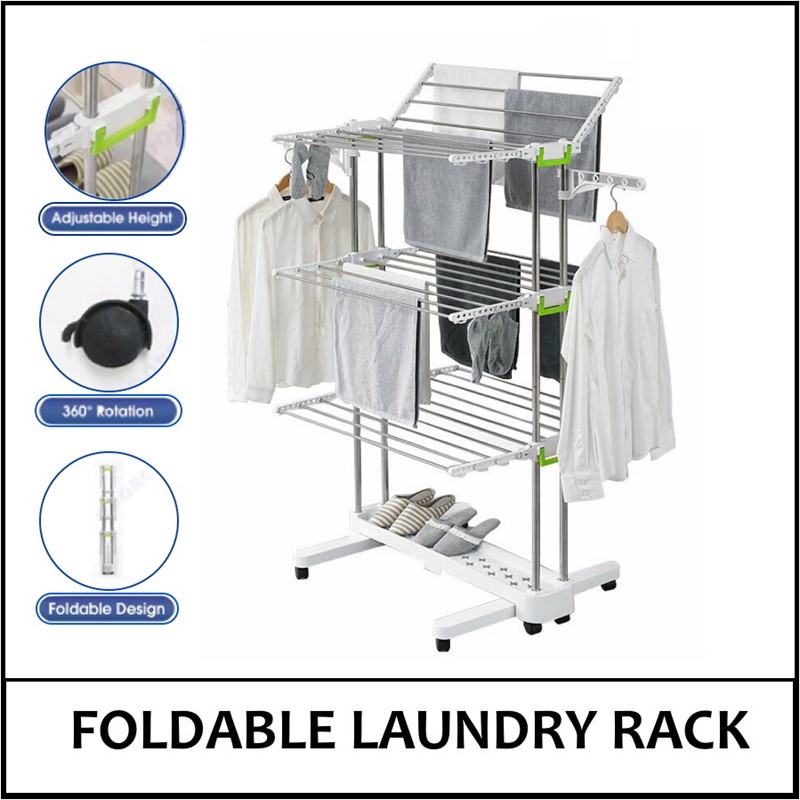 Homey Laundry Rack Multi Level Extendable With Wheels