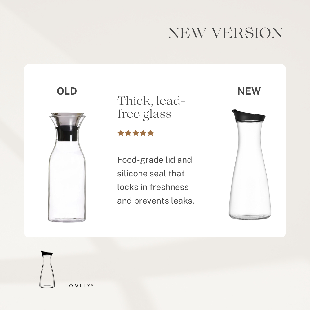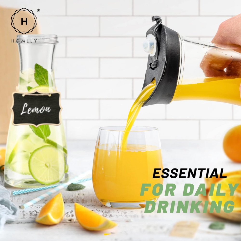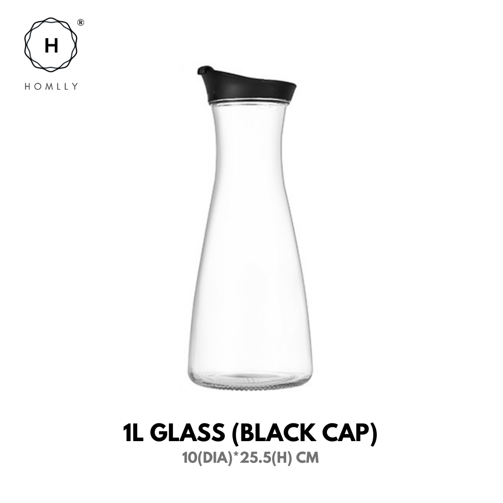 Homlly 1L Glass Water Carafe Clear Pitcher with Flip Top Lid (Round Base)