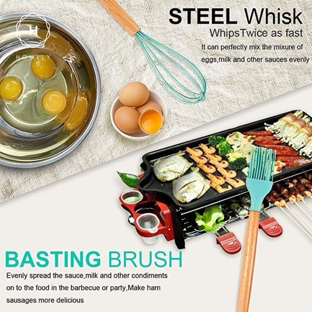 Homlly Silicone Cooking Kitchen 12 PCS Acacia Wooden Utensils Spoon Tool (BPA Free)