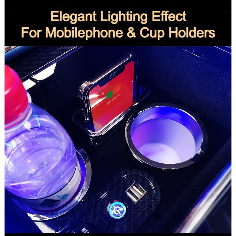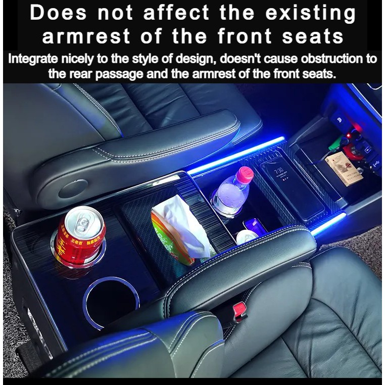 Honda Odyssey Full Length Center Console Box With Elegant Ambient LED Light Front and Rear Dual USB Port 12V Outlet