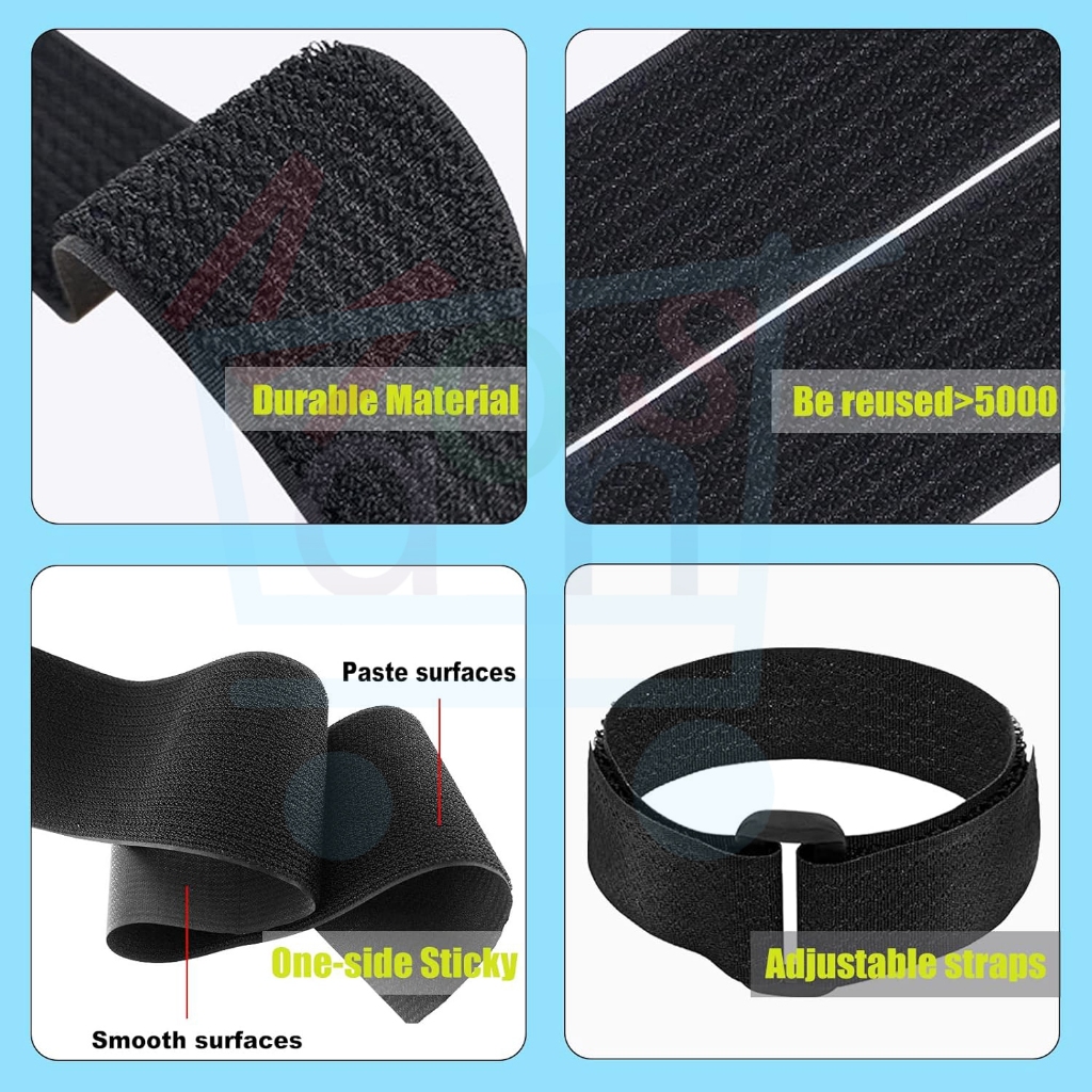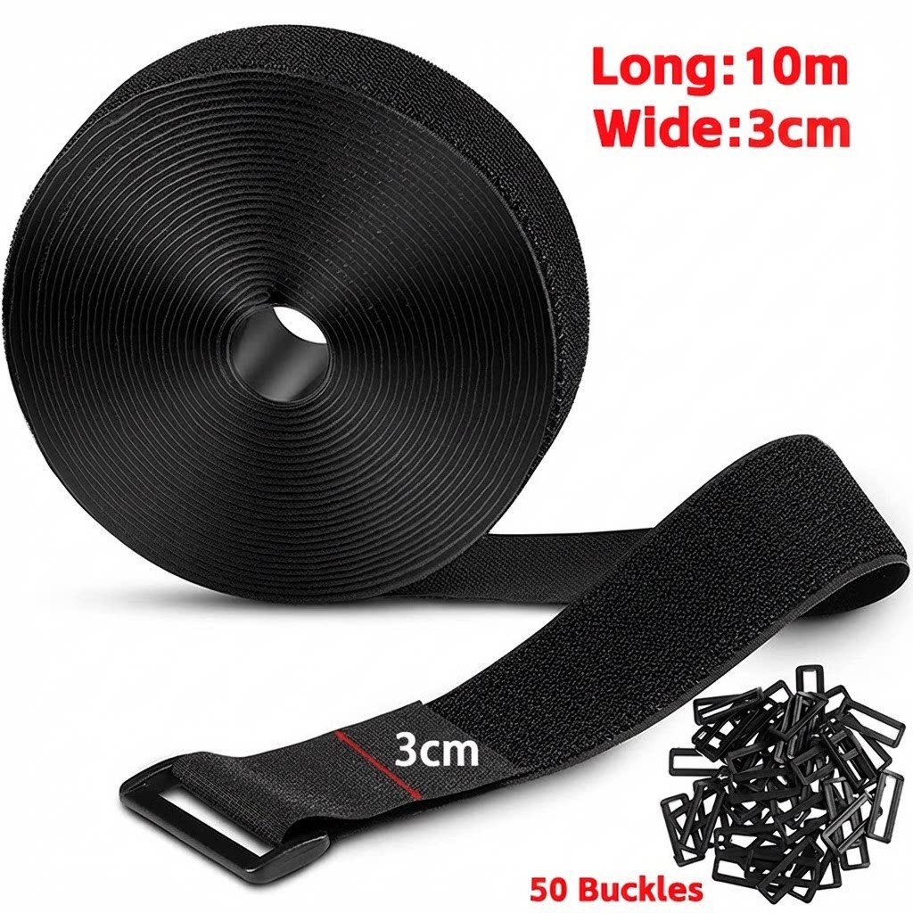 Hook and Loop Straps with Buckles, Adjustable Cable Straps, Free Cut Length, Reusable Nylon Securing Cord Ties for Organizer or Storage