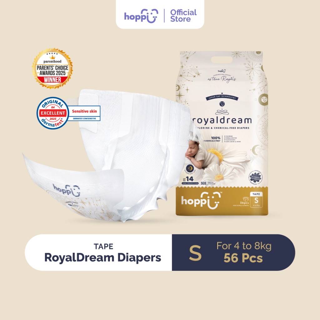 Hoppi RoyalDream Baby Diaper Tape NB66/S56/M44/L40 (1 Pack) 100% 7 Chemicals-Free*