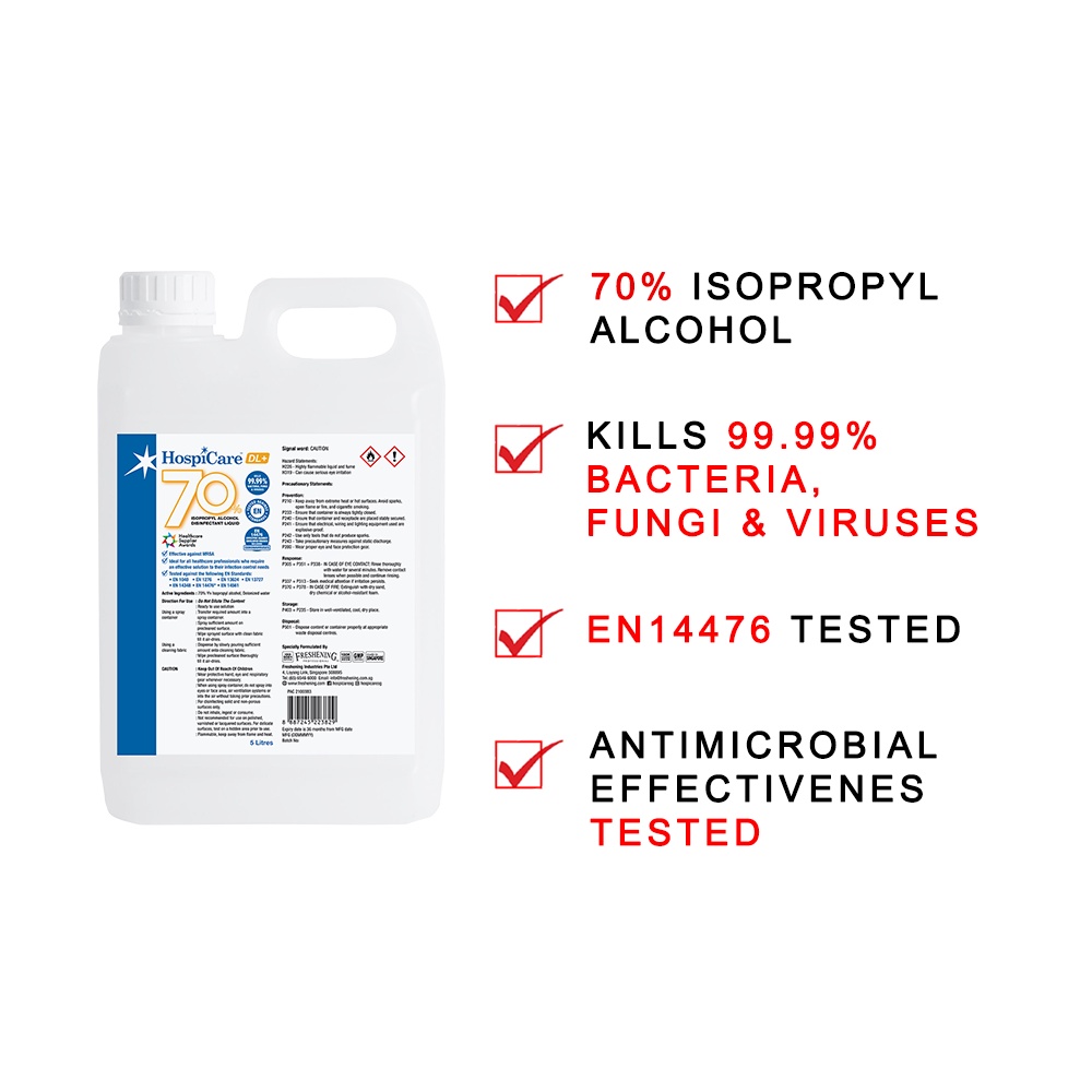 HospiCare Alcohol 70% IPA Disinfectant Liquid 5 Litres Refill