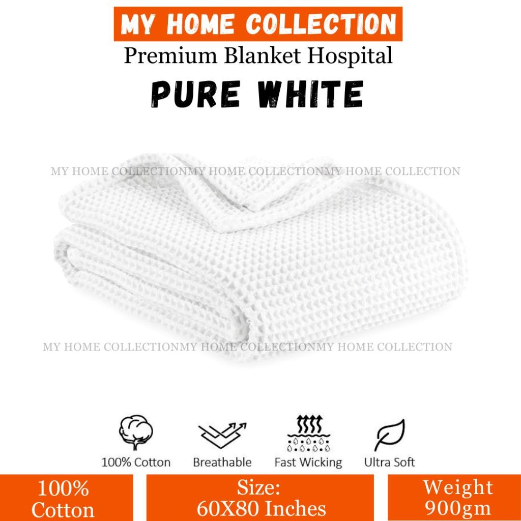 Hospital Thermal Premium Blanket - Single Size 60x80 inches Bed 100% Cotton ONE STEP Waffle Weave Blankets Cozy and Soft