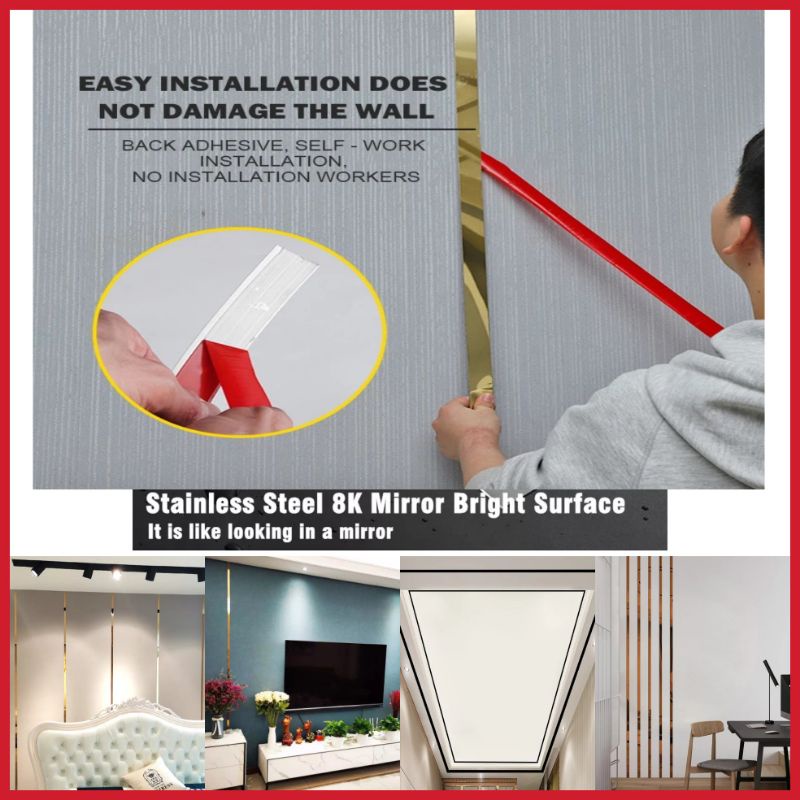 Stainless Steel Self Adhesive Gold Strip 5 Meter | Hiasan Dinding Siling Pintu | Waterproof DIY Home Decor