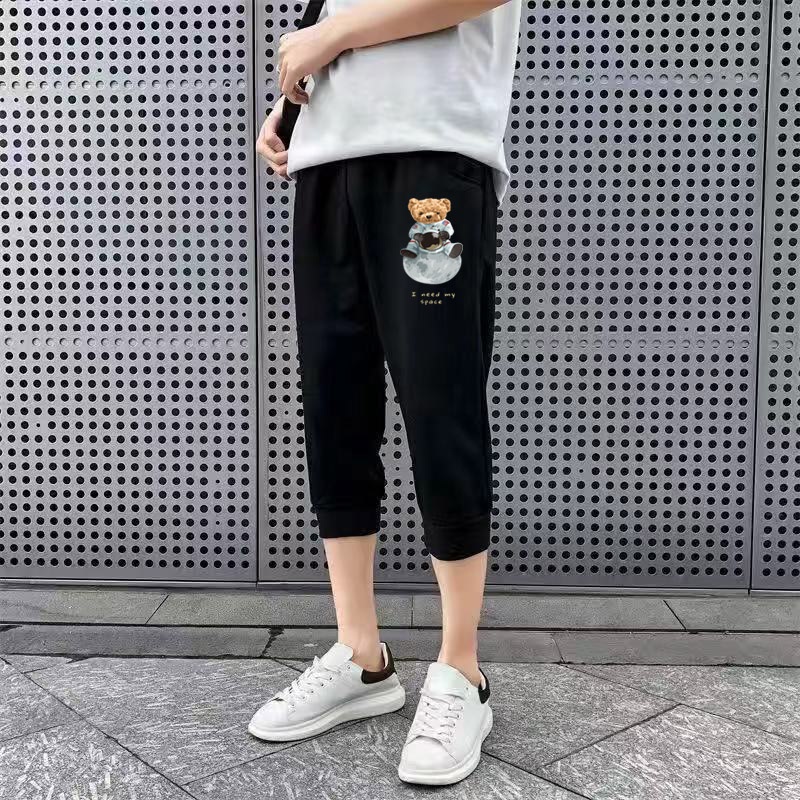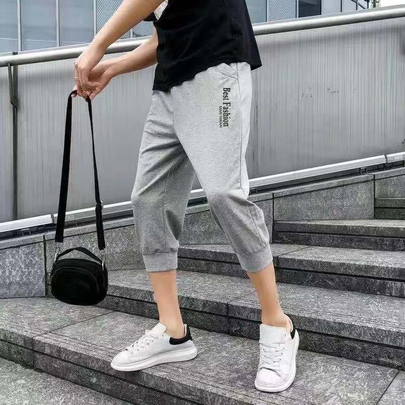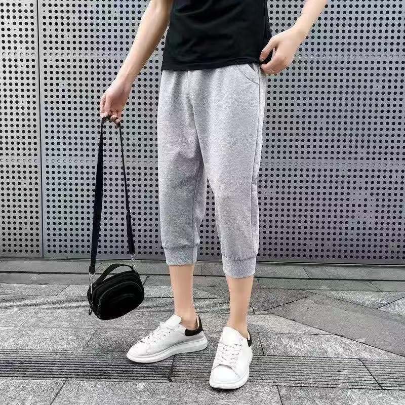 Hot SALE!!! S-5XL Big size 100% Men's Causal Workout Track Pants Solid Color sports soft 3/4 Calf-length pants