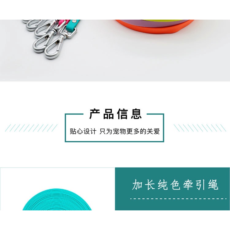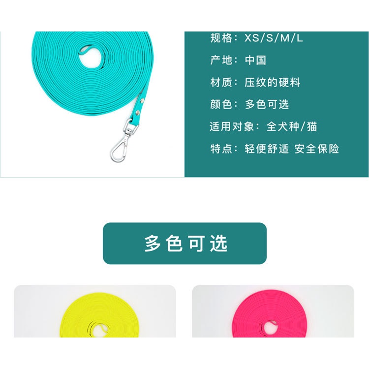 Hot Sale Candy Color pvc Embossed Long Traction Rope Waterproof Wear-Resistant dog leash pet leash