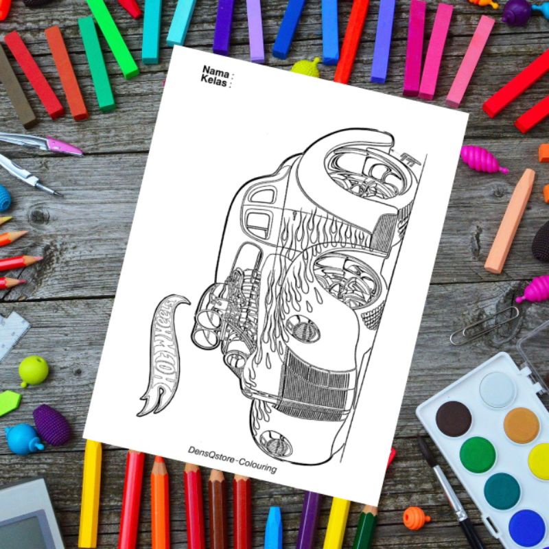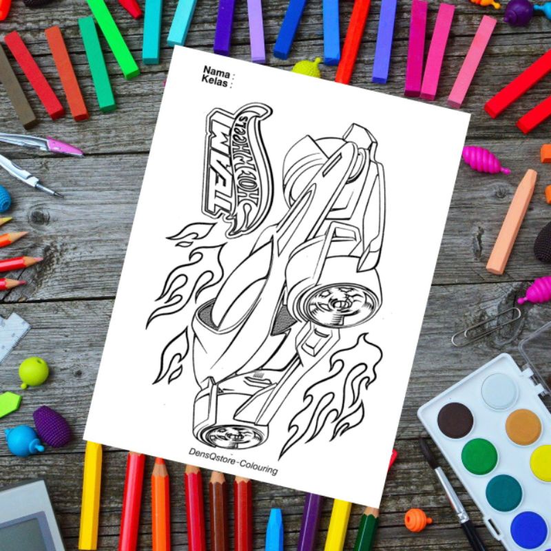 Hot Wheels Themed Coloring Paper Drawing Paper/ (10 Picture Sheets)