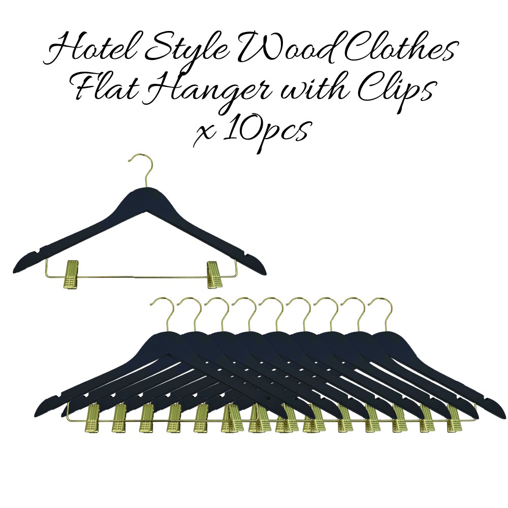 Hotel style Wood Clothes Flat hanger with clips x 10pcs