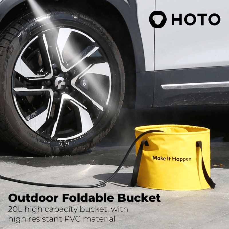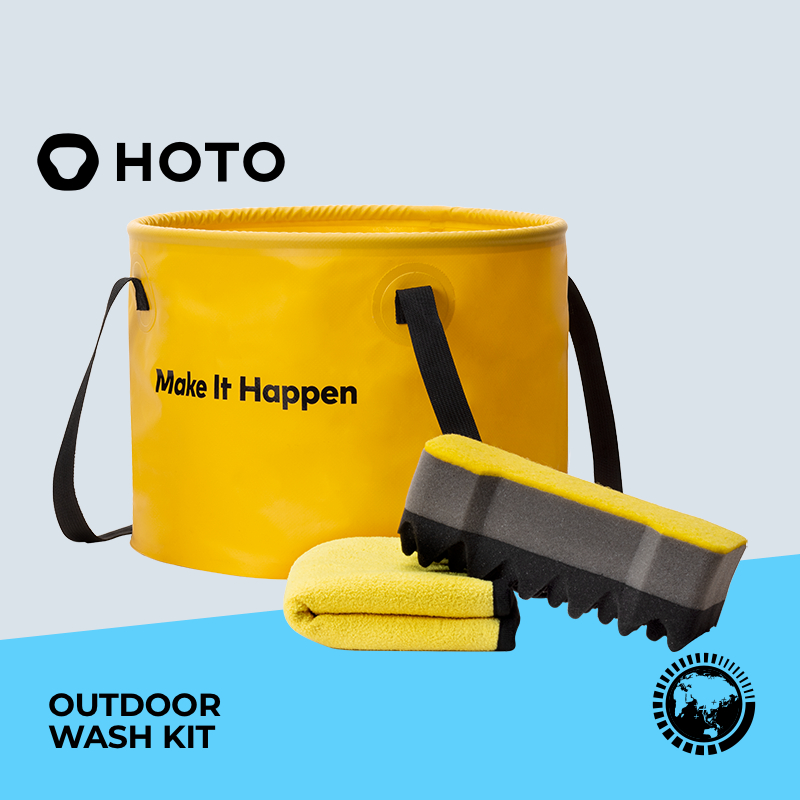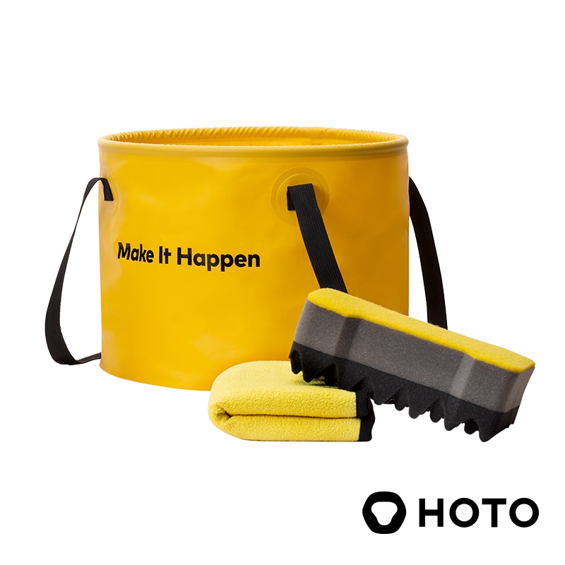 HOTO Outdoor Wash Kit – 20L Foldable Bucket, Dual-Sided Sponge, Microfiber Cloth, Leak-Resistant