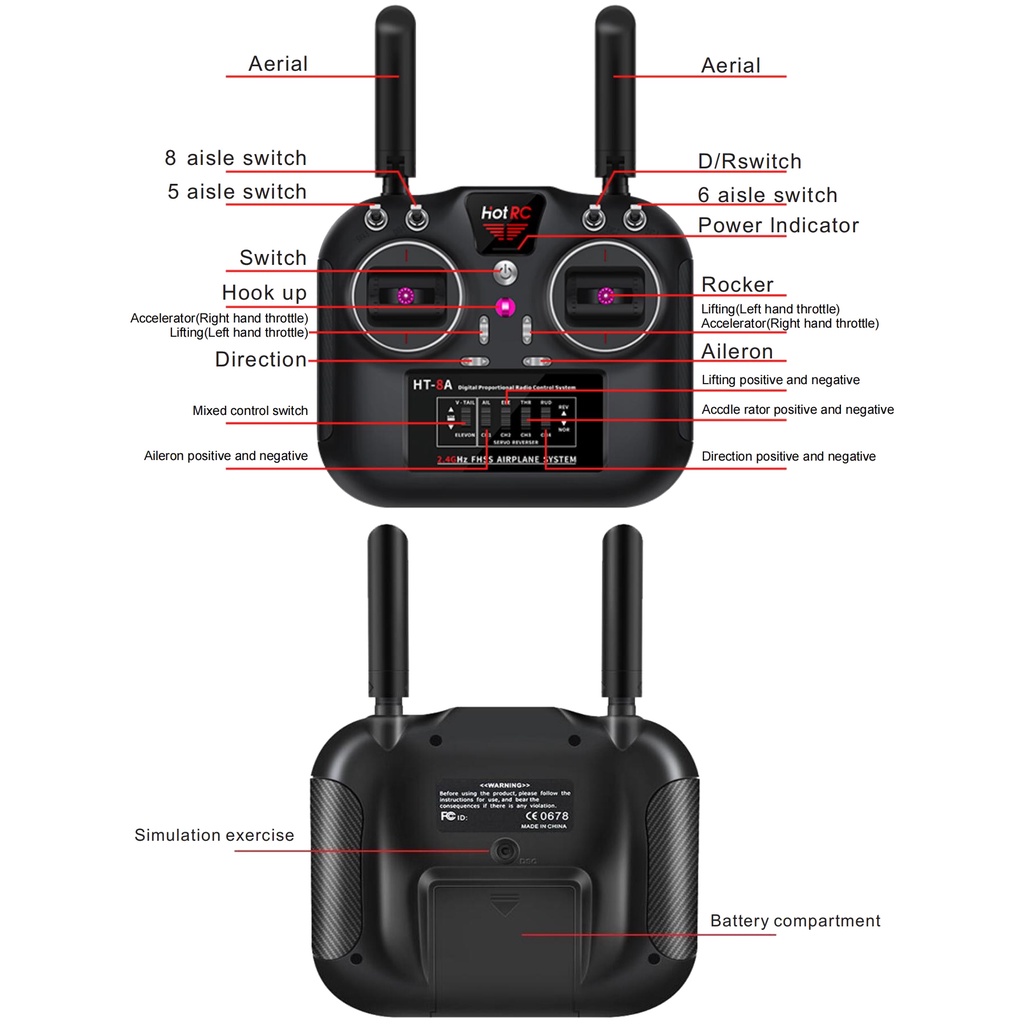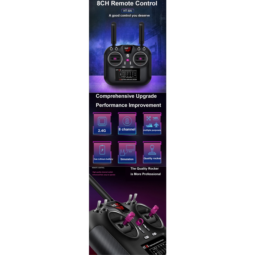 Hotrc HT-8A 2.4G 8CH FHSS GFSK Transmitter Remote Controller SBUS Receiver For Model Airplane Drone Car Boat