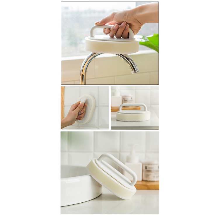 Household Cleaning Scouring Sponge with handle | Comes with 2 Sponges | Surface Cleaning/Bathtub/Wall Tiles