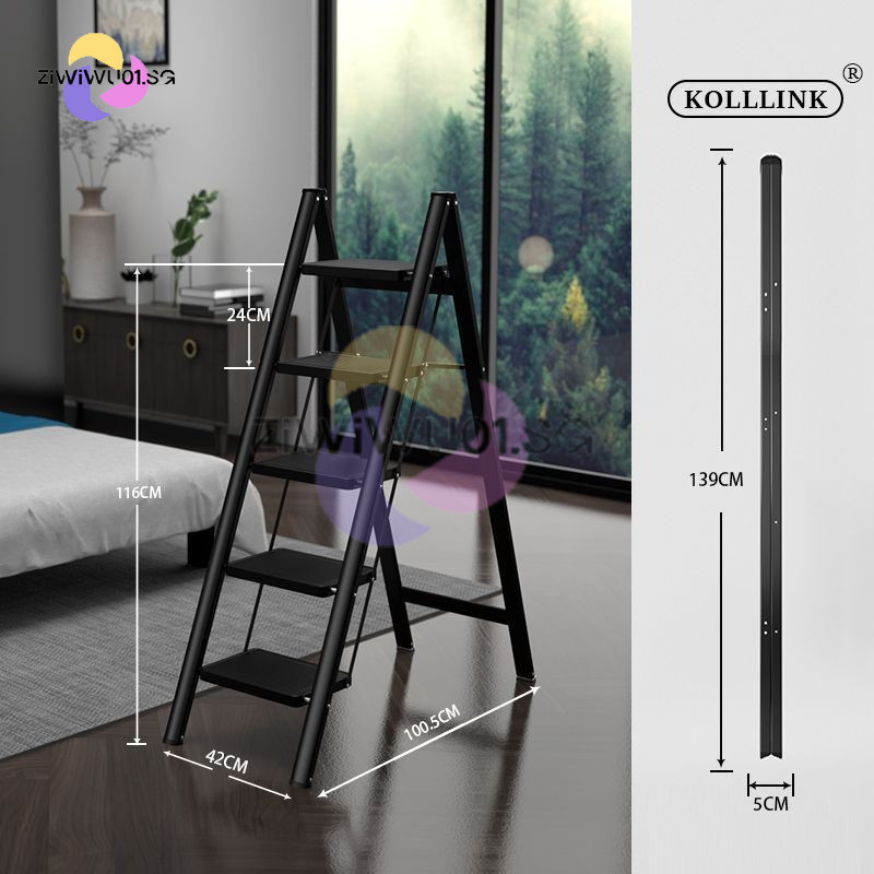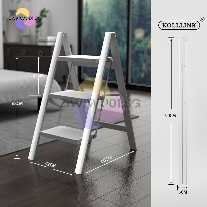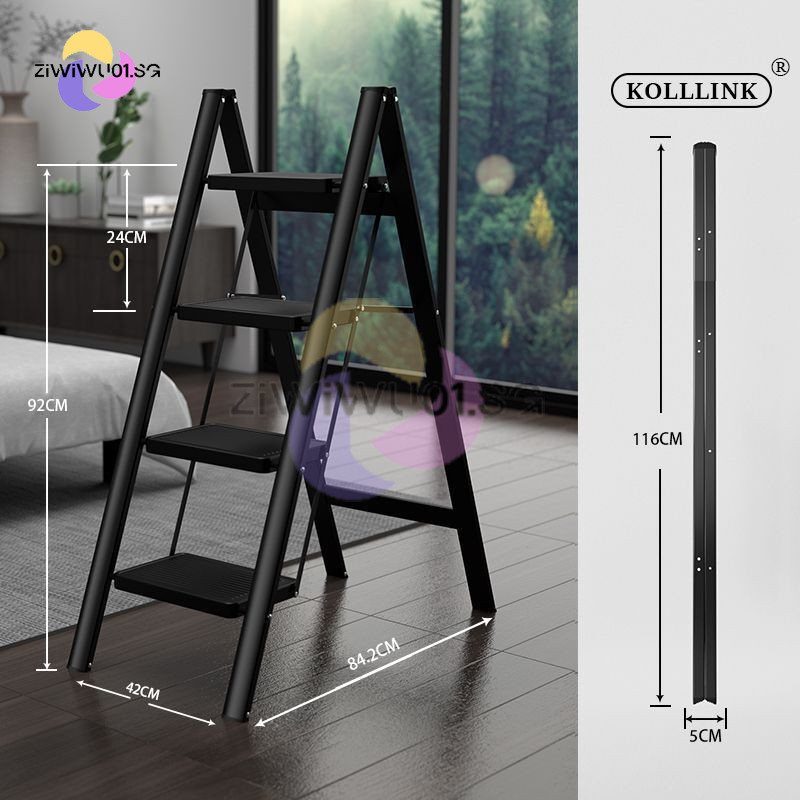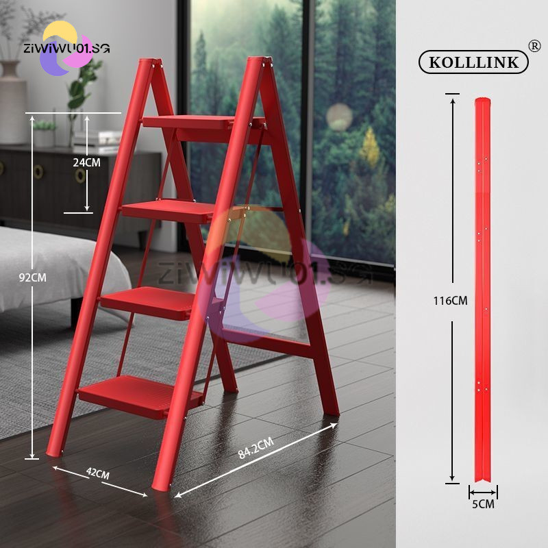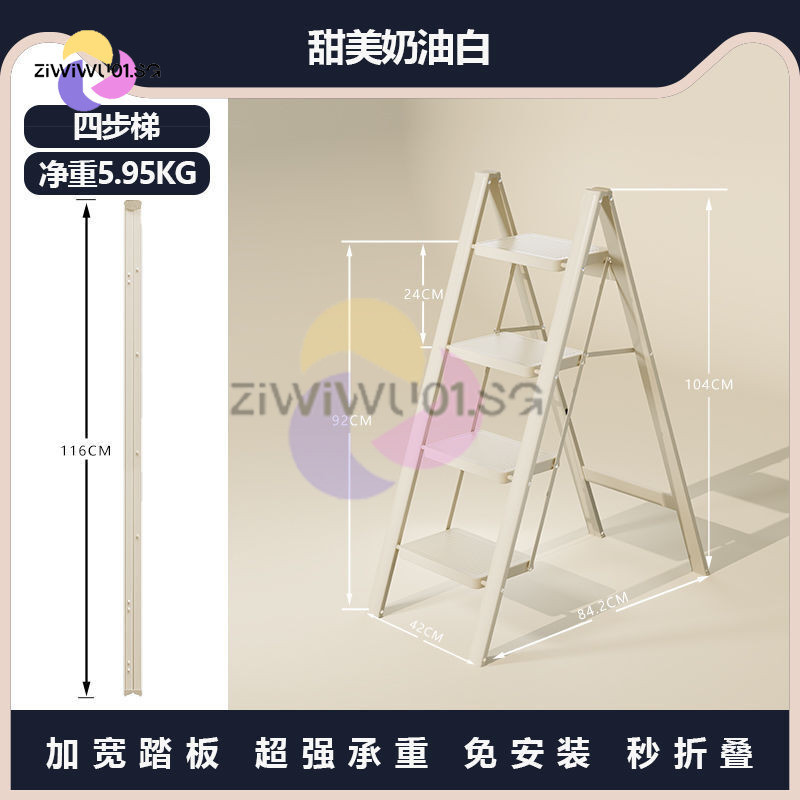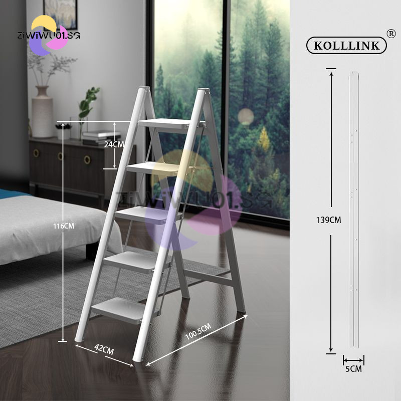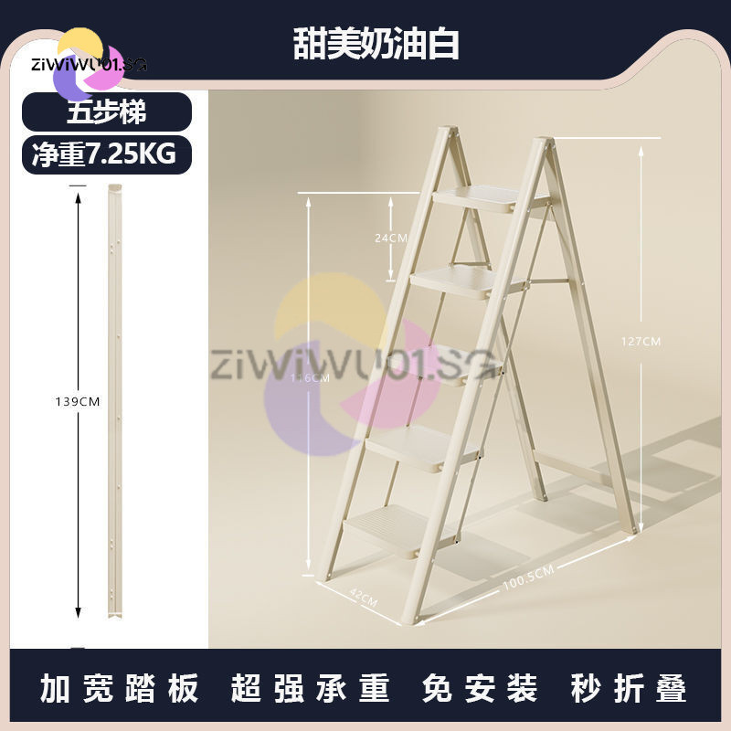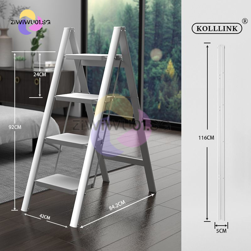 Household Ladder Indoor Zigzag Ladder Multifunctional Folding Ladder Aluminum Alloy Telescopic Ladder Flower Frame Ladder Ziwiwu01.Sg