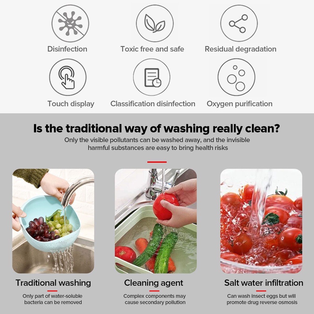 Household Ultrasonic Cleaner Machine Fruits Vegetables Food Washer Sterilizer Oxygen Concentrator Food Detoxification Wa