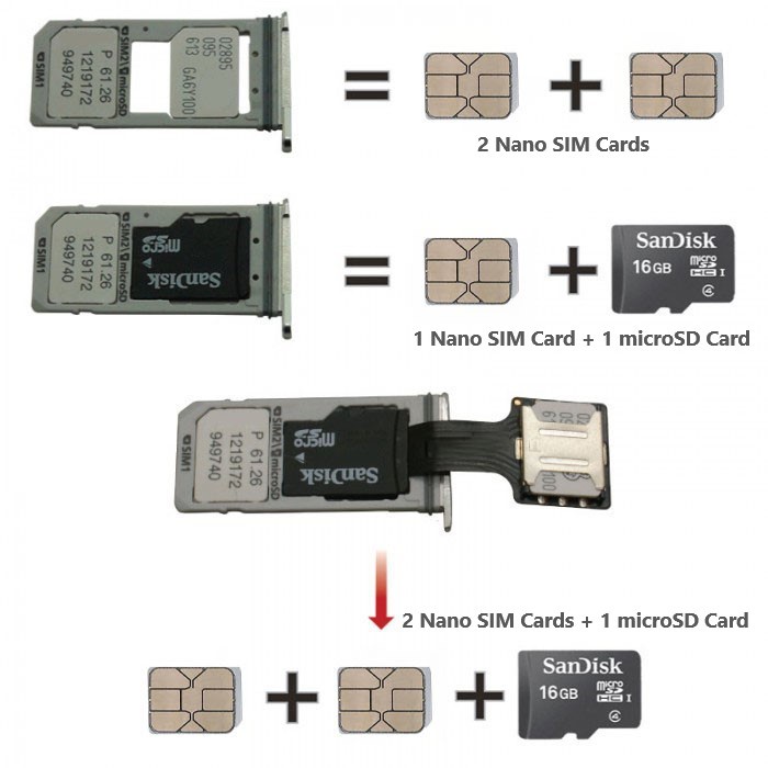 Hybrid Nano SIM Card FPC Extender Adapter for Smartphone Device Using Dual SIM Cards with Micro SD Card Simultaneously