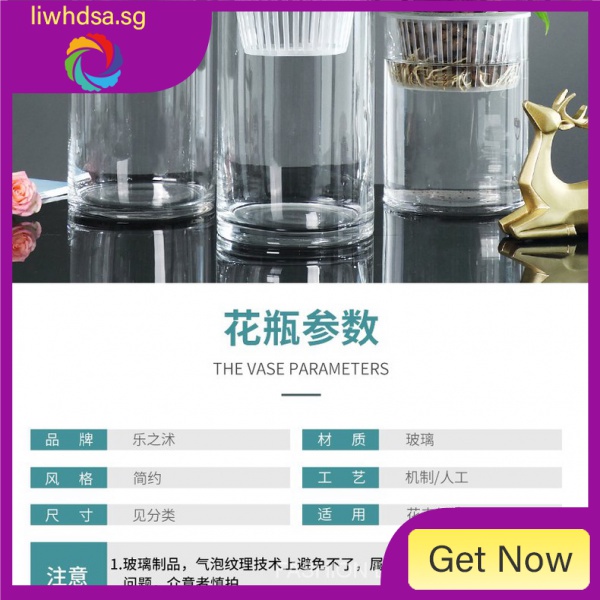 Hydroponic Plant Glass Bottle Transparent Straight Cylindrical Vase Simple Flower Pot Spathiphyllum Hydroponic Tank Container