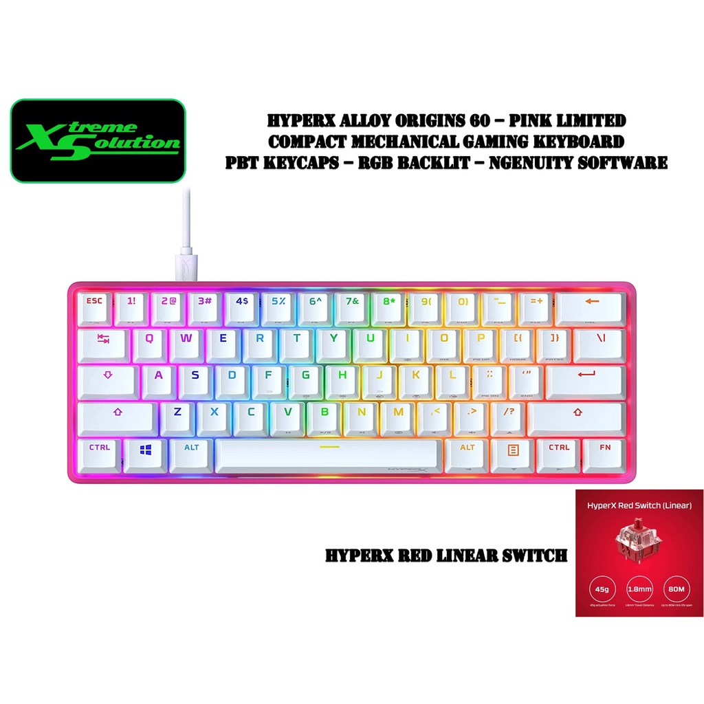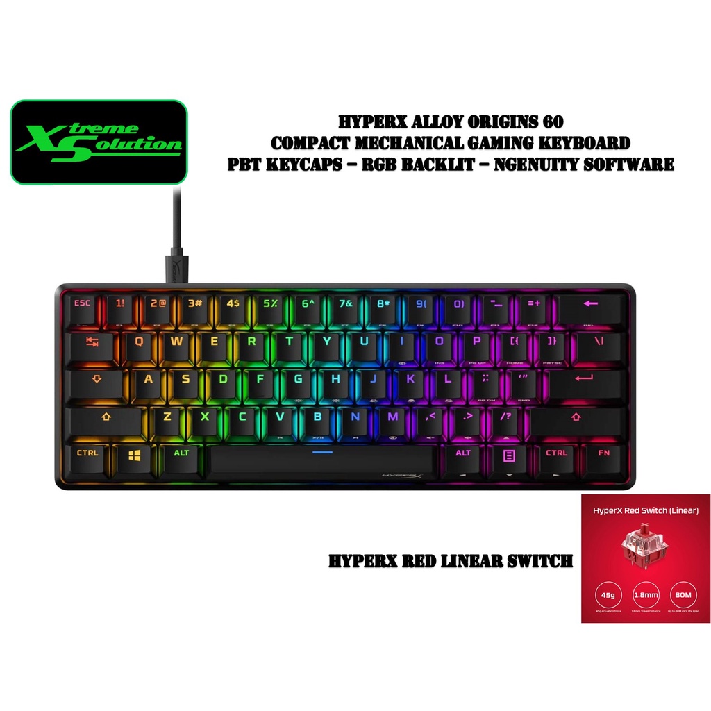 HyperX Alloy Origins 60 - Compact Wired RGB Gaming Mechanical Keyboard | PBT Keycaps | HyperX Switches