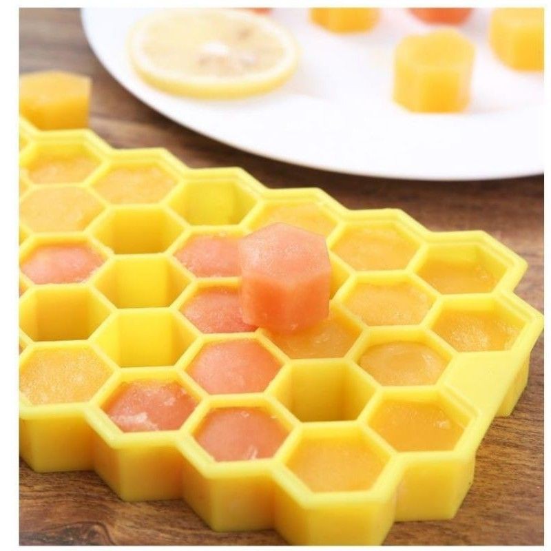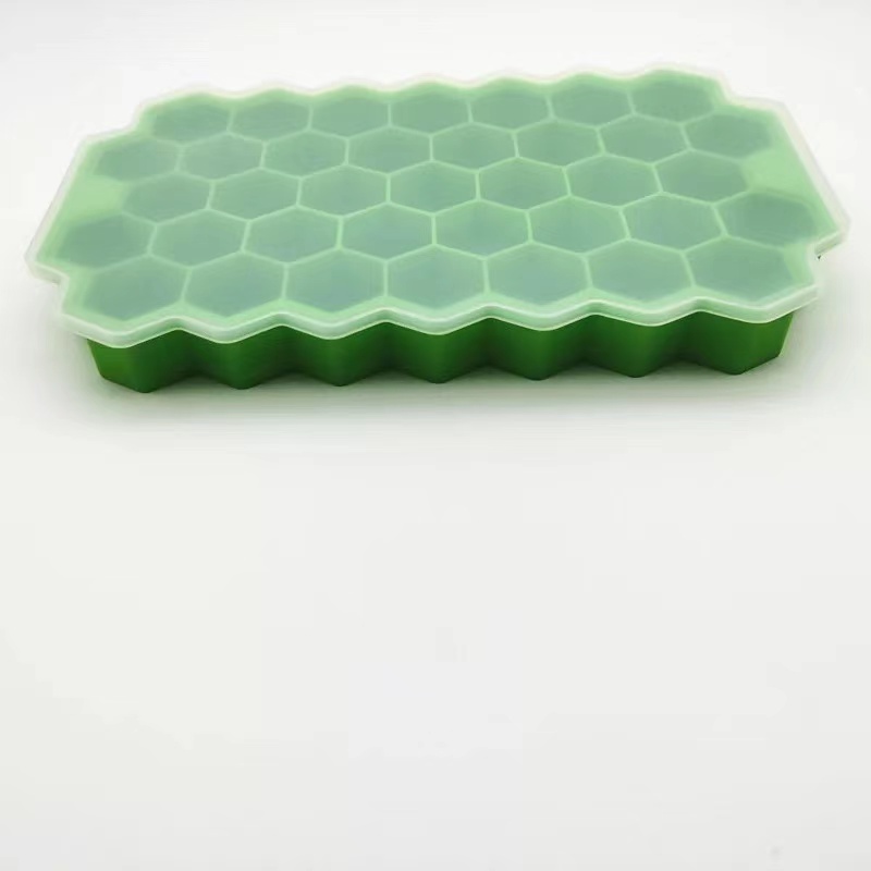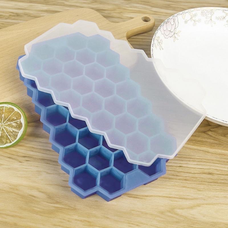 ICE CUBE MAKER Honeycomb Shape Ice Cube 37-Slot Tray Mold Storage Silicone Container with Lid