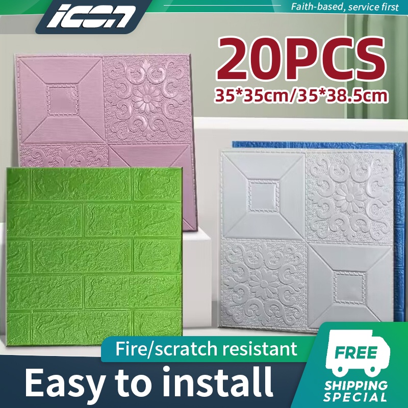 ICON 38x35cm 3D Foam Brick Wallpaper Adhesive Wall Decor Wall Sticker Waterproof 20PCS BIG 3D Wallpaper Self Adhesive