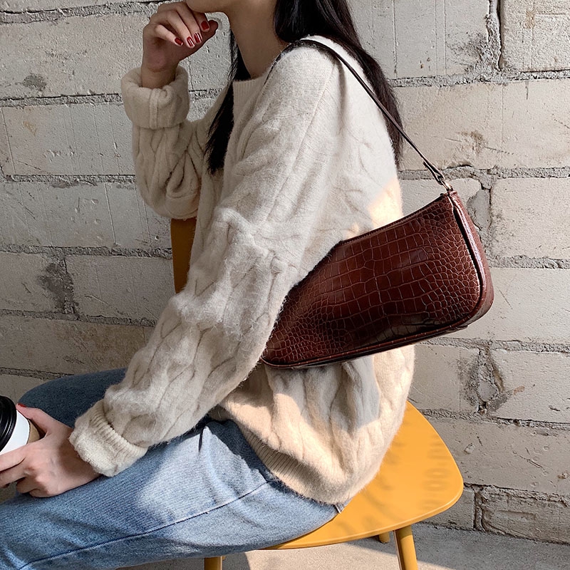 IELGY Hand bag French small design bag retro bag crocodile pattern handbag lady