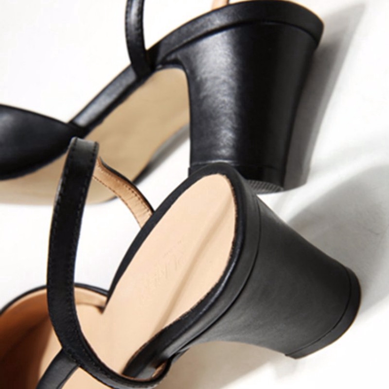 IELGY Korean Version Of The Square Head Baotou Sandals Women's Fashion Thick With Heel Wild Sandals