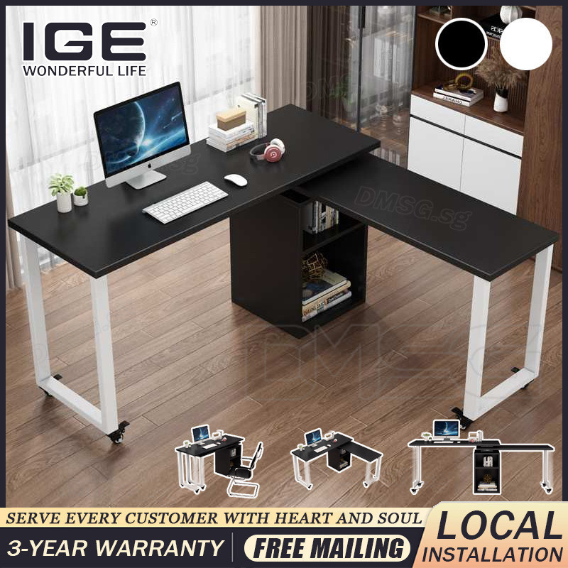 IGE Retractable Computer Desk L-shaped Writing Table with Wheels Adjustable Small House Standing Desk Study Table/Desk