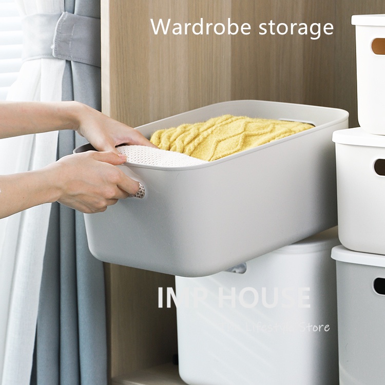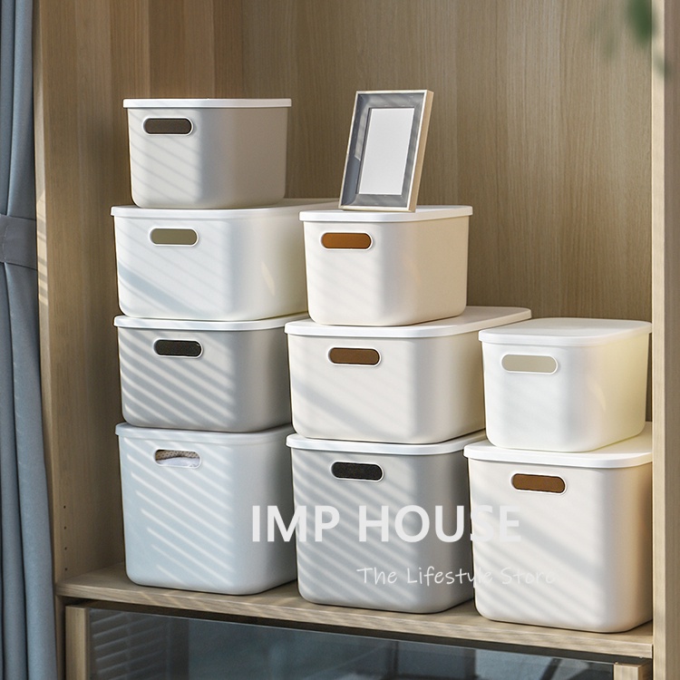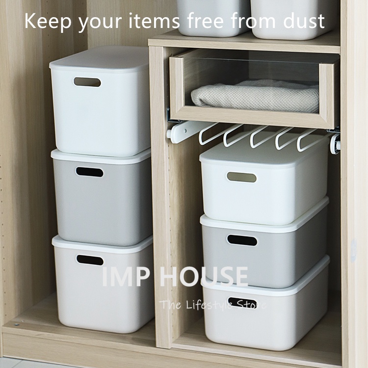 IMP HOUSE Japan Minimalist Stackable Plastic Storage Box with Lid Home Organizer Wardrobe Organizer Box