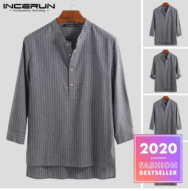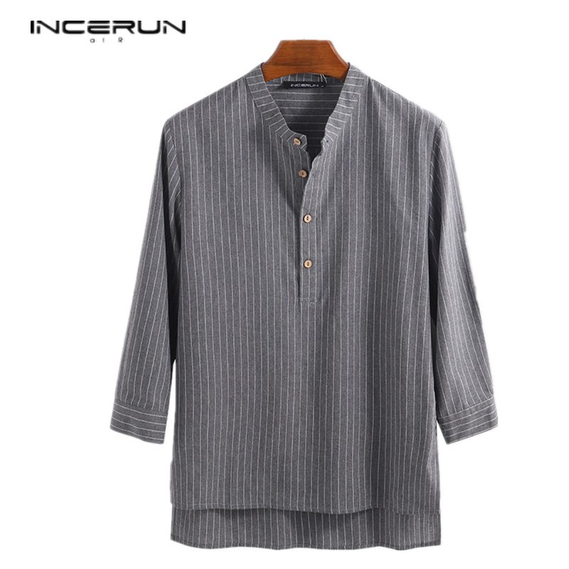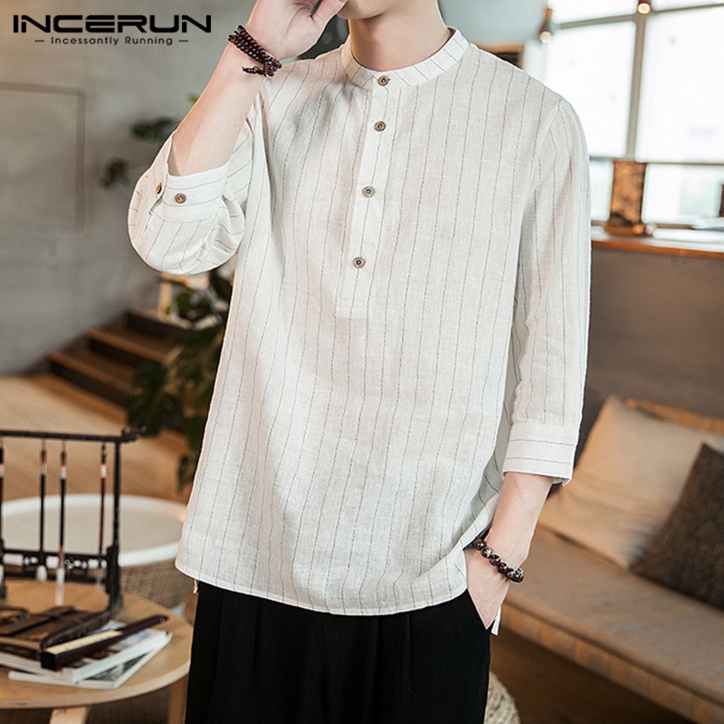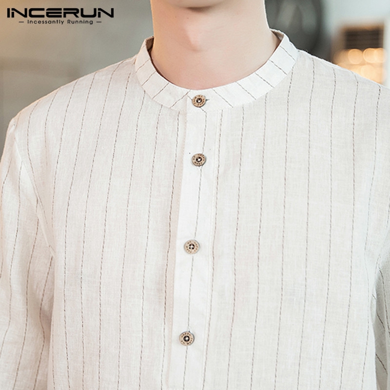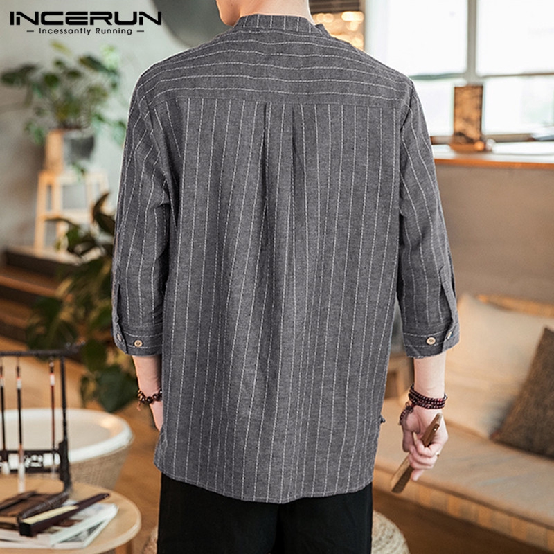 INCERUN Men Casual Retro Slim Fit Half Sleeve Striped Print Shirts