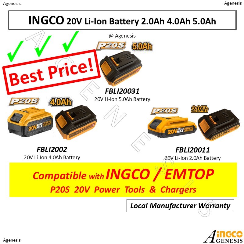 INGCO 20V Li-Ion Battery 2.0Ah FBLI20011 / 4.0Ah FBLI2002 / 5.0Ah FBLI20031