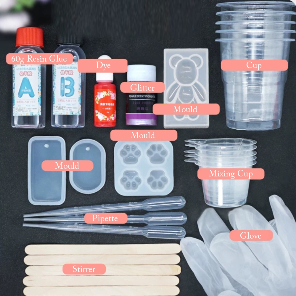 INSTOCK Epoxy Resin Beginner Starter Kit 1:1 Set AB Glue 60ml with Different Set 8HR Drying [FREE DELIVERY]