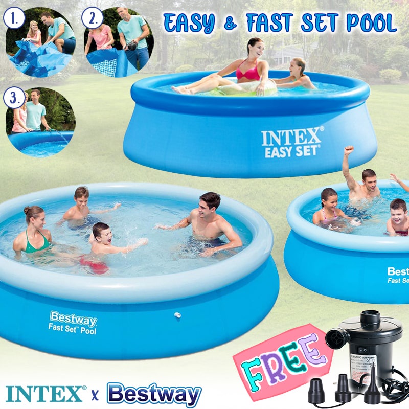 INTEX / BESTWAY EASY SET Pool Large Size Inflatable Swimming Pool Family Round Shape Circular Pool Kolam Mandi Besar
