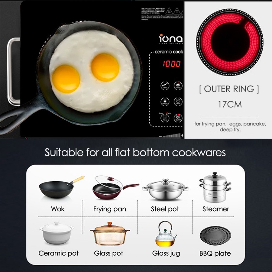 IONA Ceramic Induction Cooker Stove | Multifunctional Electric Infrared Cooker Hob Fry Steam - GL27