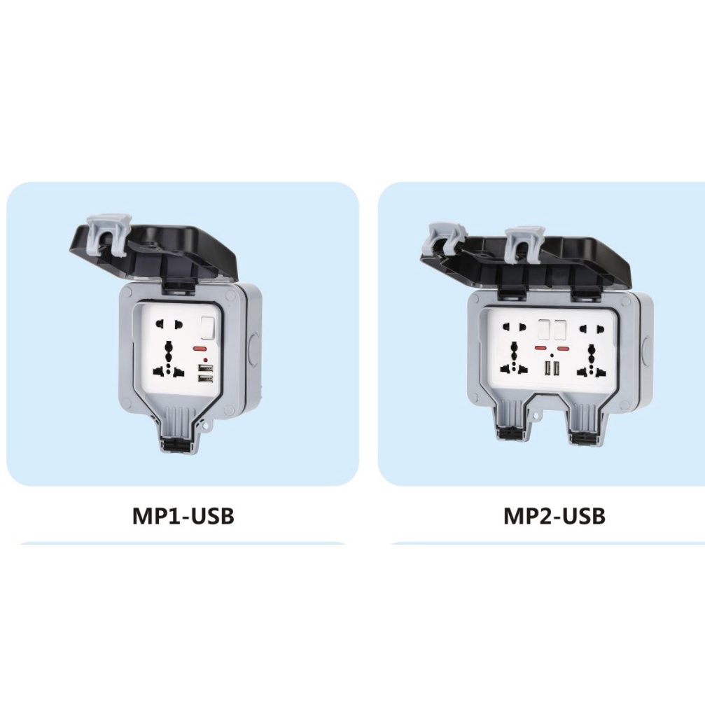 IP66 13A Weatherproof Outdoor BOX Wall Socket Double Universal / UK Switched Outlet With USB Charging Port 110-240V