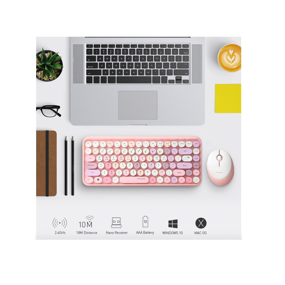 IRIVER Wireless Membrane Mini Keyboard Optical Mouse Combo Emotional Simple Design Korean/English Layout