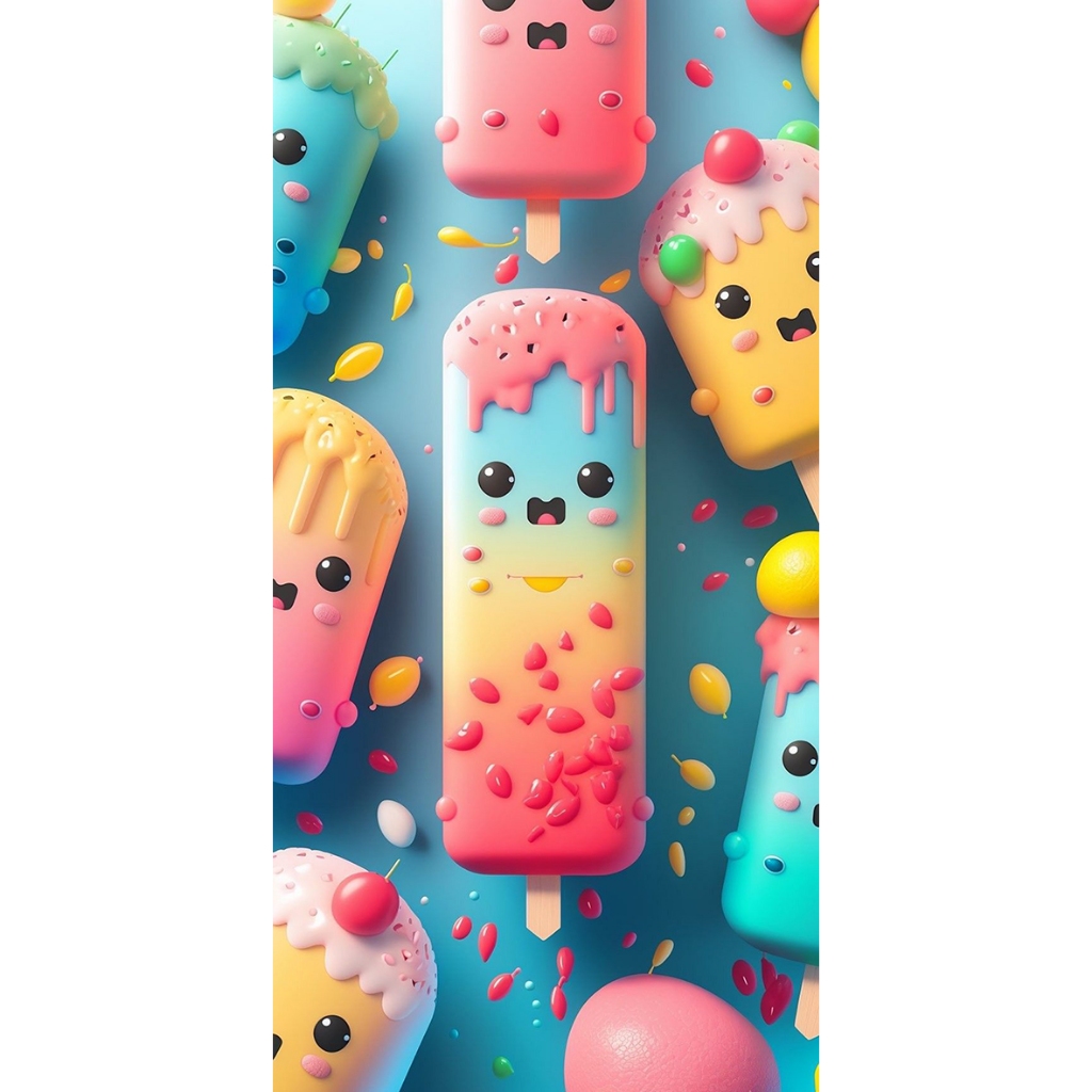 1-DOOR FRIDGE STICKERS, 2-DOOR FRIDGE STICKERS, ICE CREAM MOTIF FRIDGE WALLPAPER