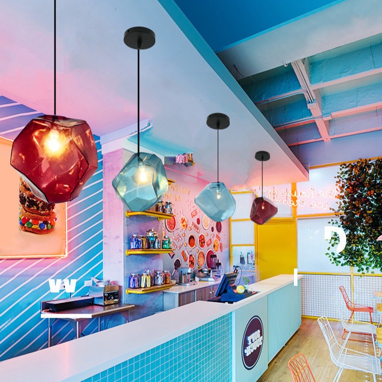 Ice Cube Led Pendant Light Led Glass Hanging Lamp Modern Minimalist Colorful Pendant Lamp Bedroom Bedside Chandelier Dining Table Dining Room Pendant Light Living Room Bar Ceiling--&*