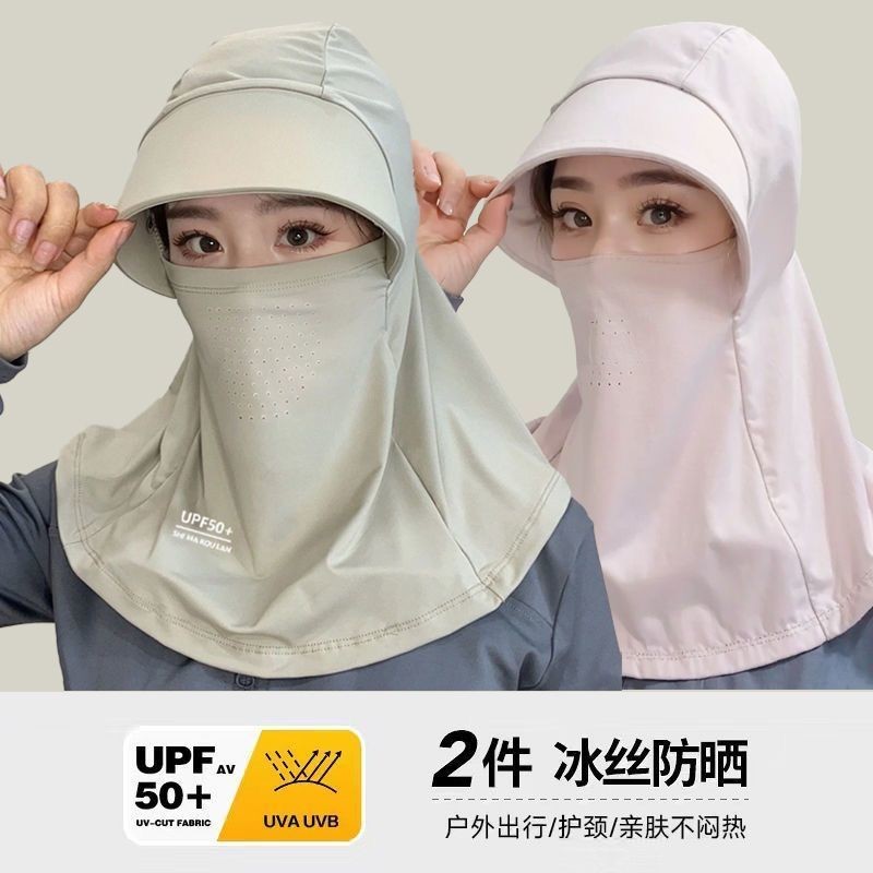 Ice Silk Sun Hat * Face Mask Sun Hat * Summer UV Protection Cycling Outdoor Neck Protection Dust-Proof Sun Hat
