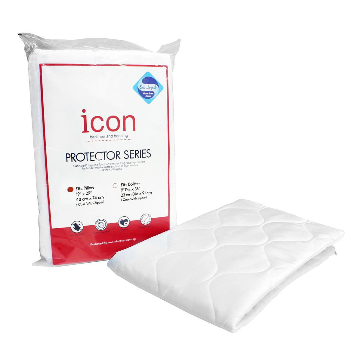 Icon Quilted Pillow Pad / Bolster Pad / Protector, Zip Cover, Hypoallergenic, Anti Dustmite, Hygenic