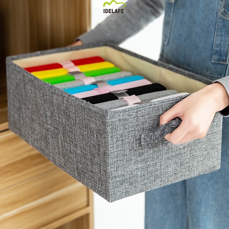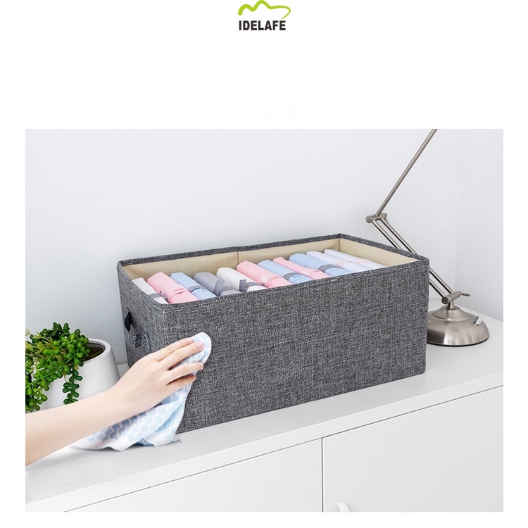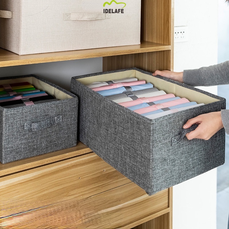 Idelafe Foldable Fabric Stackable Container Organizer Wardrobe Foldable Storage Box with Lid Clothes Storage Box Durable Fabric Toys Organizer