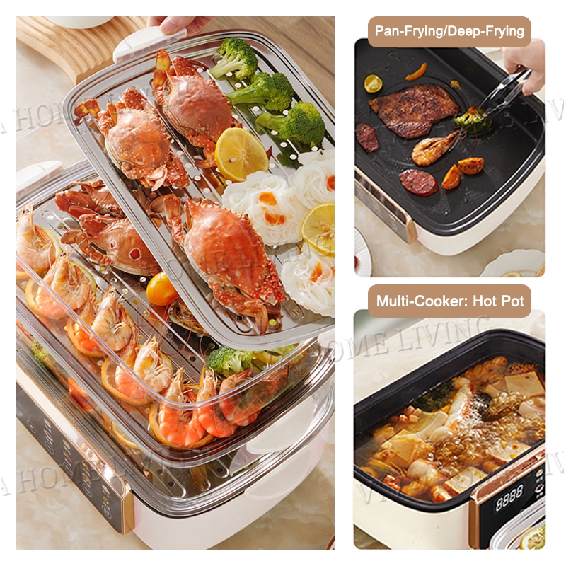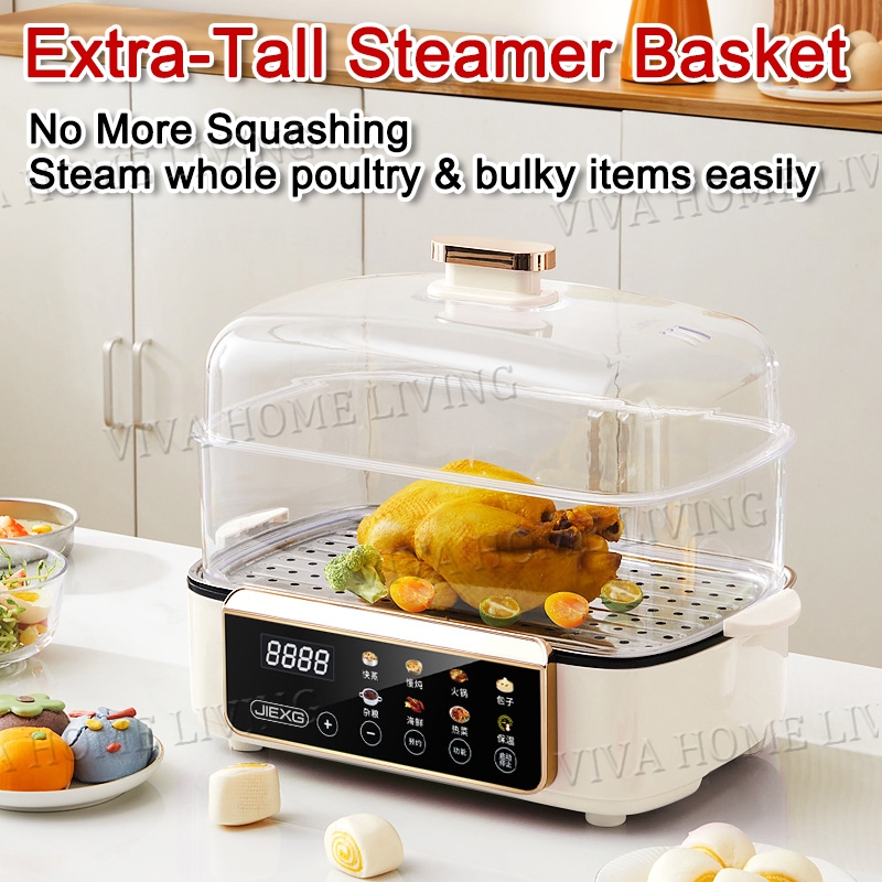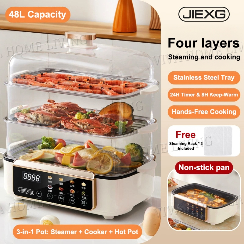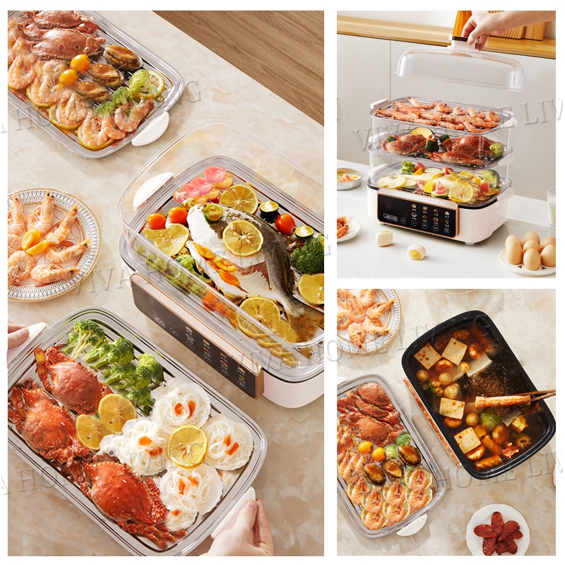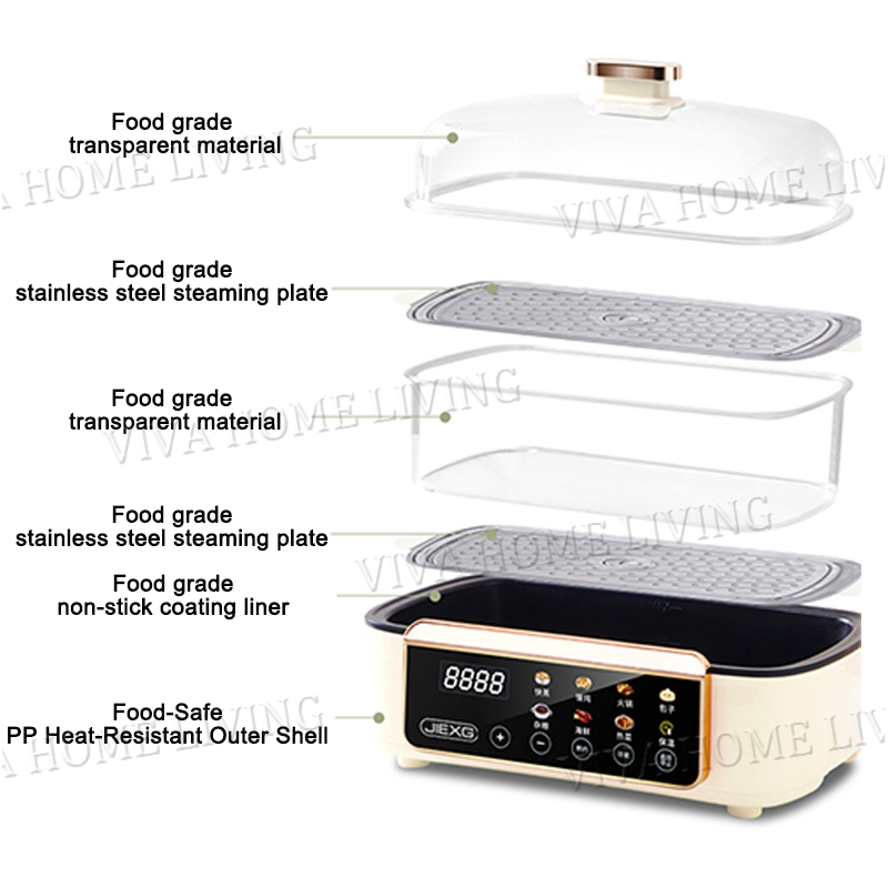 VIVA 3-Tier 48L Steam Cooker | 2-in-1 Fast-Heating Electric Steamer & Hot Pot | With Non-Stick Pot | For HDB Kitchen